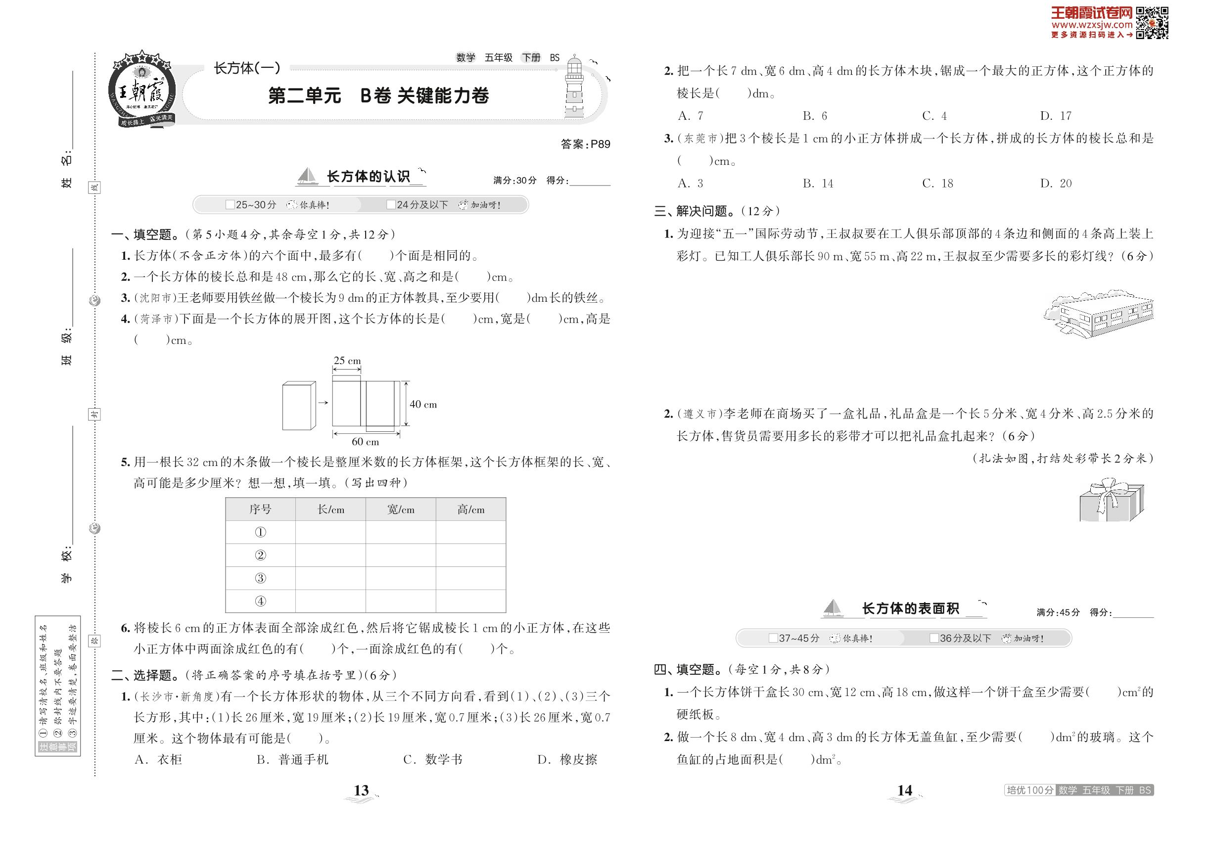 2023下册五年级数学北师版 第二单元 B卷 关键能力卷
