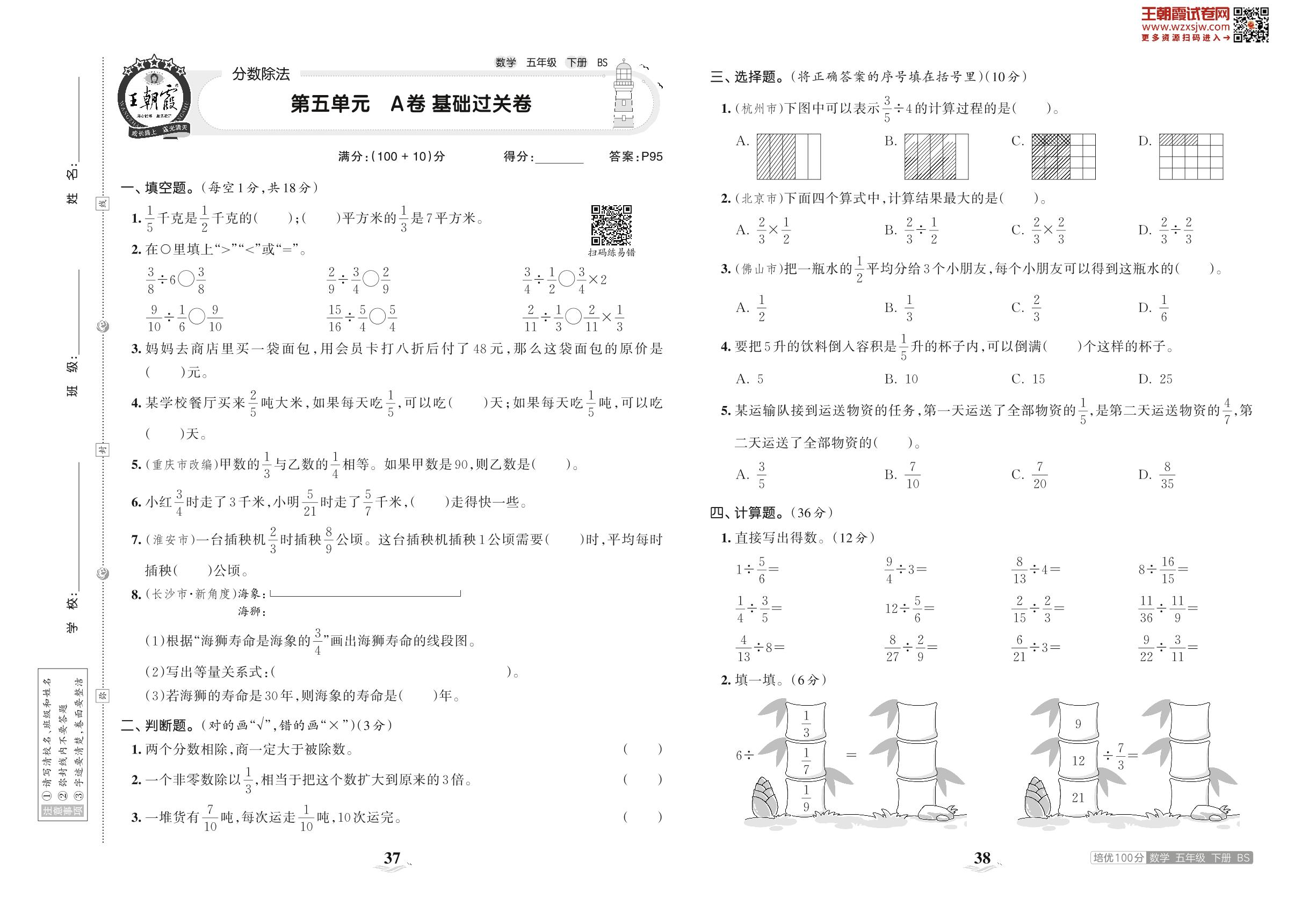 2023下册五年级数学北师版 第五单元 A卷 基础过关卷