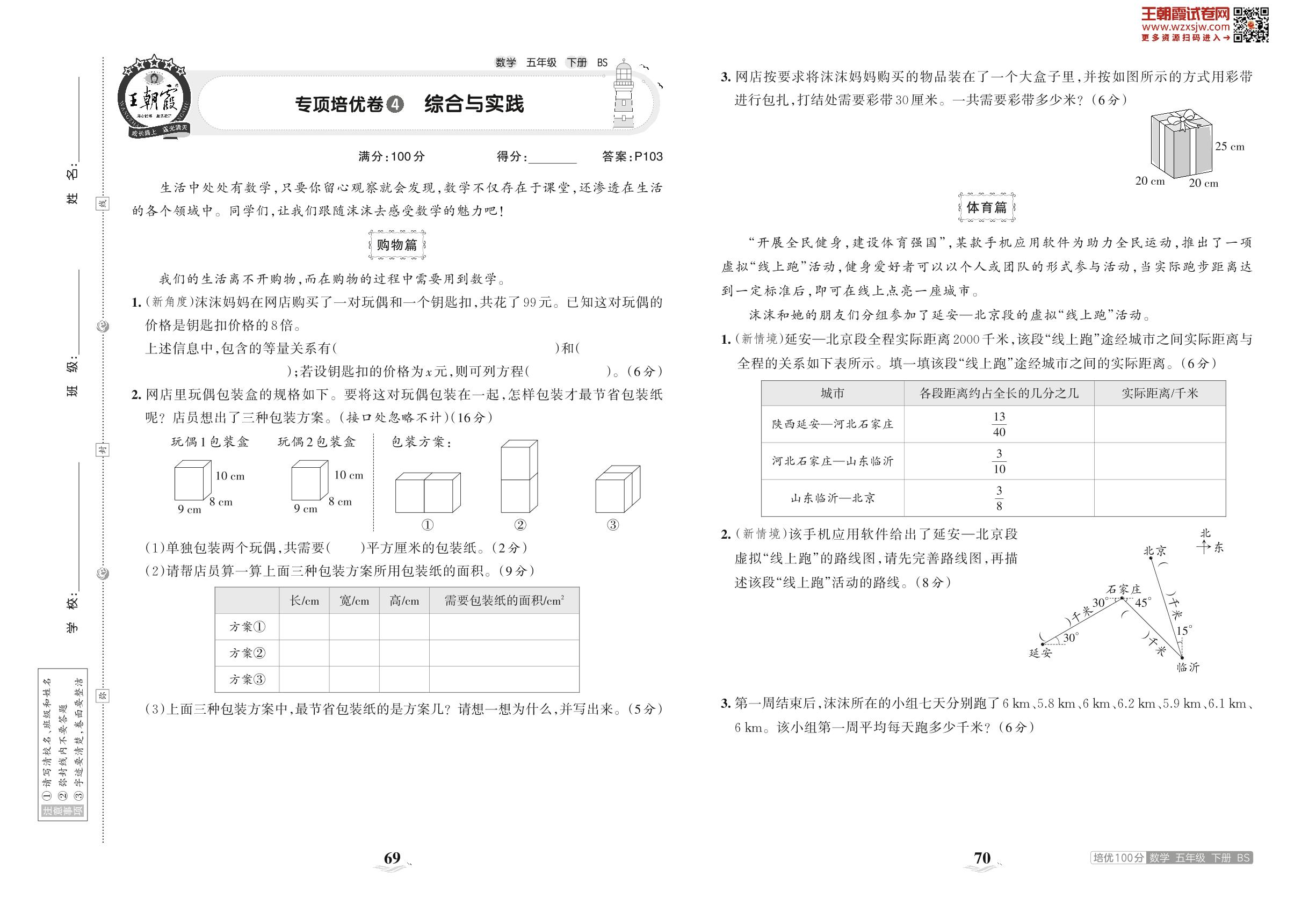 2023下册五年级数学北师版 专项培优卷4 综合与实践