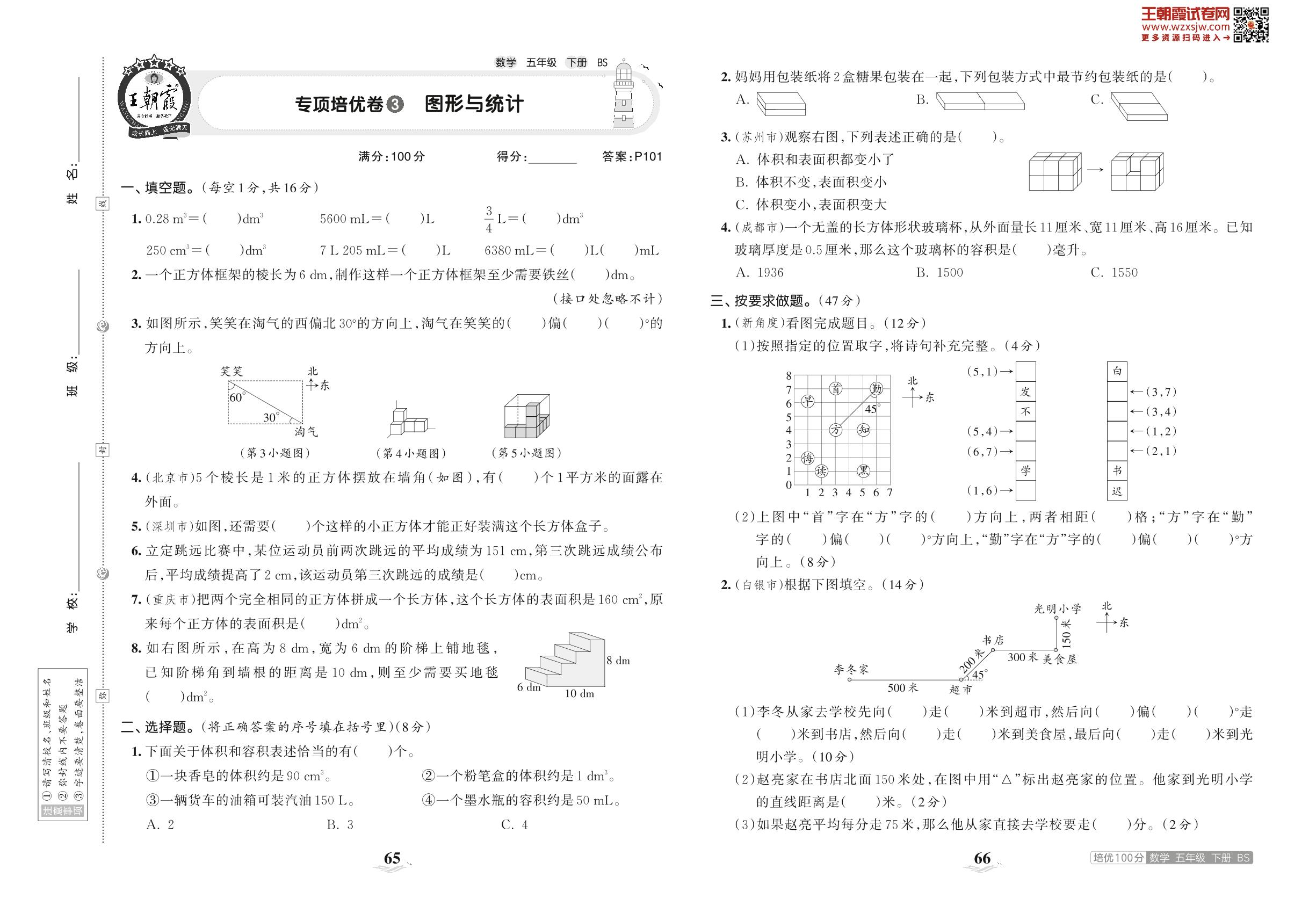 2023下册五年级数学北师版 专项培优卷3 图形与统计