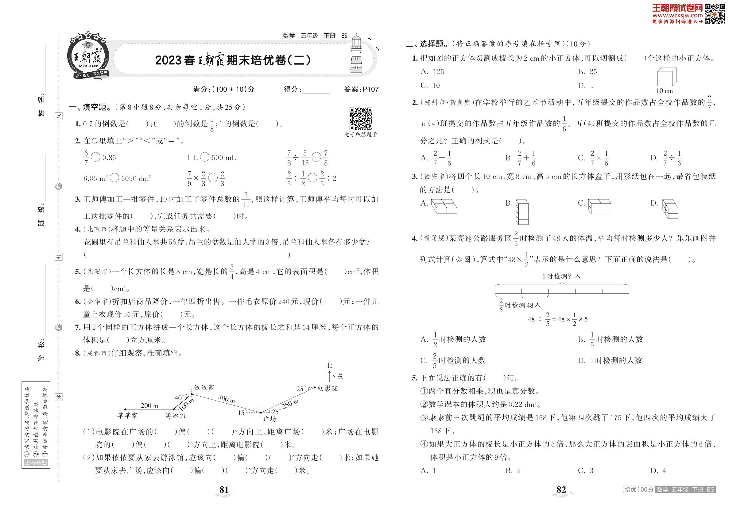 2023下册五年级数学北师版 2023春王朝霞期末培优卷(二)