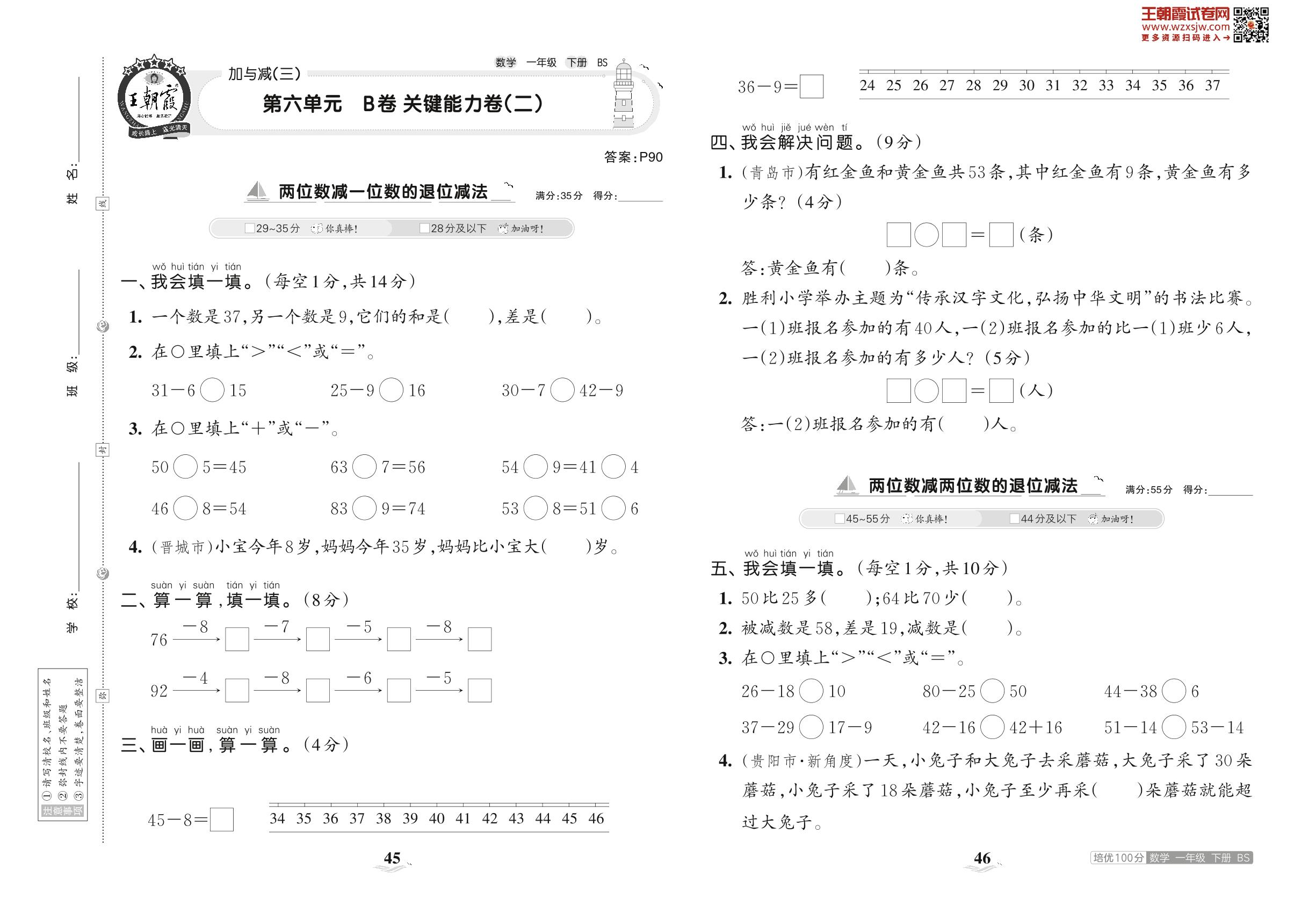 2023下册一年级数学北师版 第六单元 B卷 关键能力卷(二)