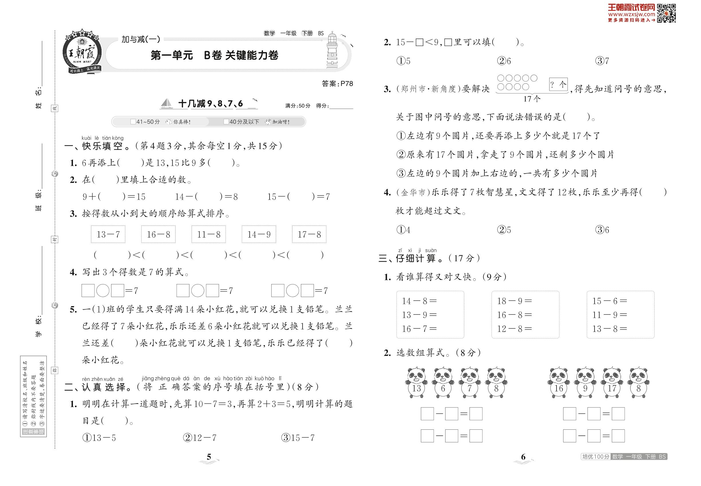 2023下册一年级数学北师版 第一单元 B卷 关键能力卷