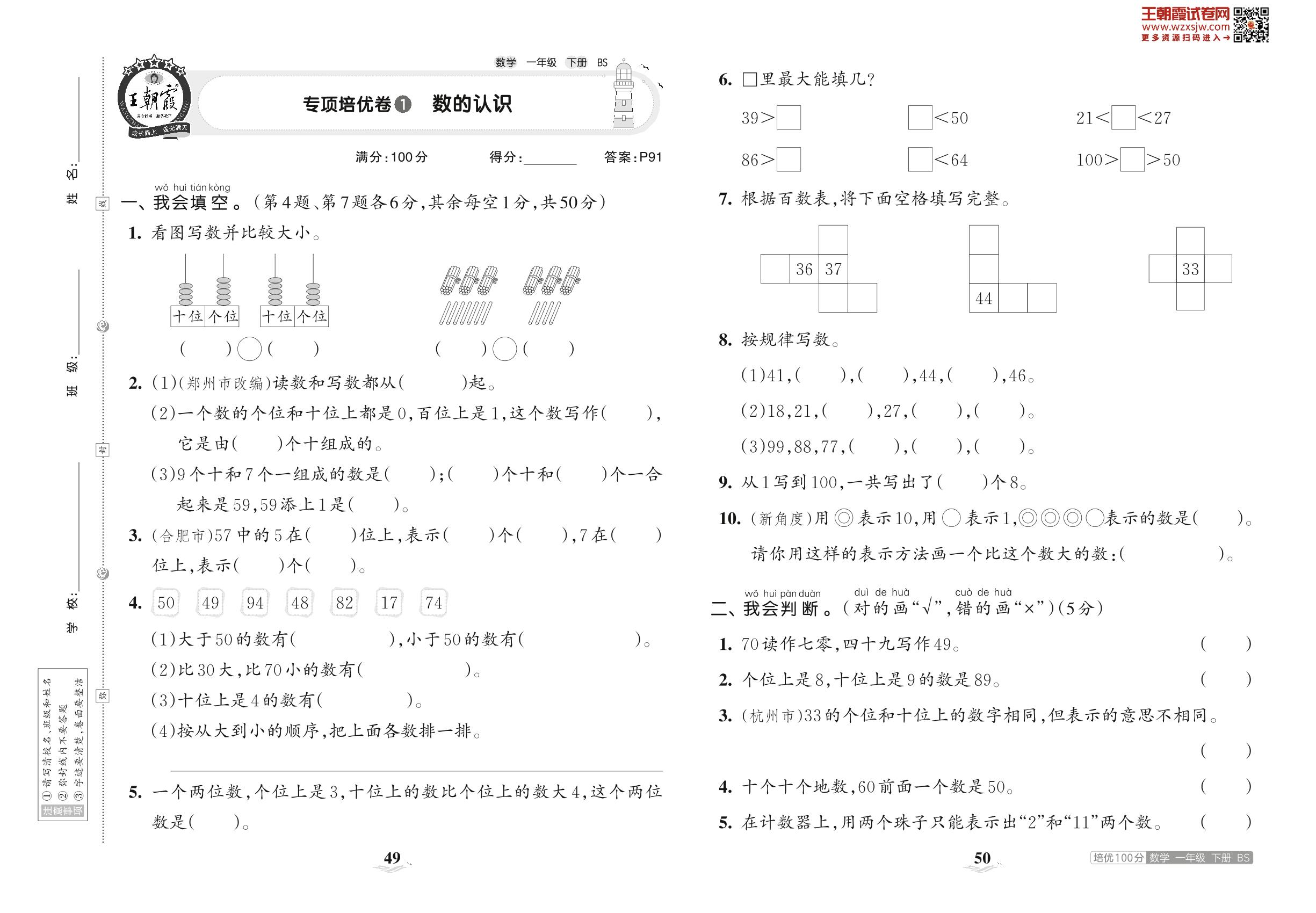 2023下册一年级数学北师版 专项培优卷1 数的认识