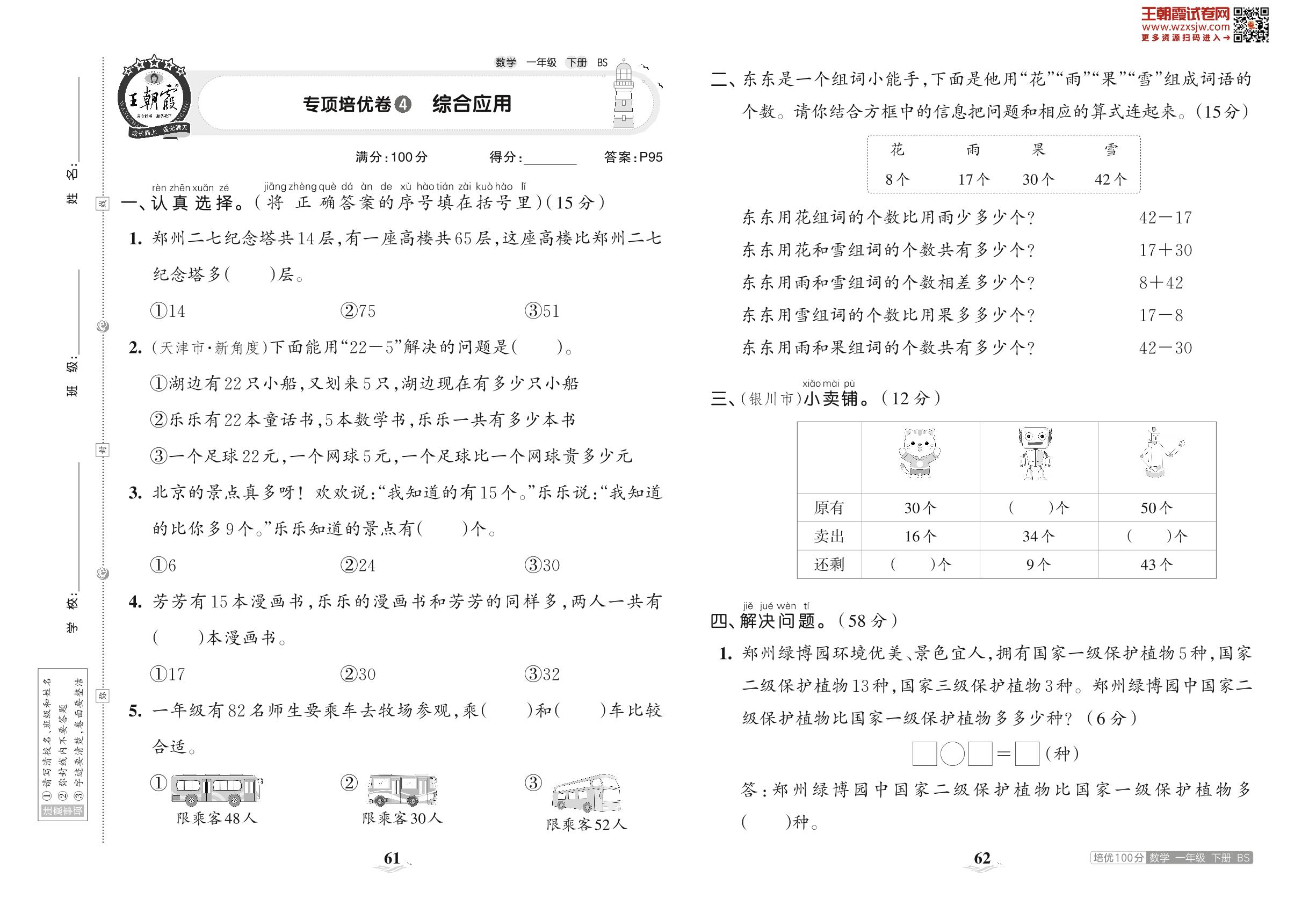 2023下册一年级数学北师版 专项培优卷4 综合应用