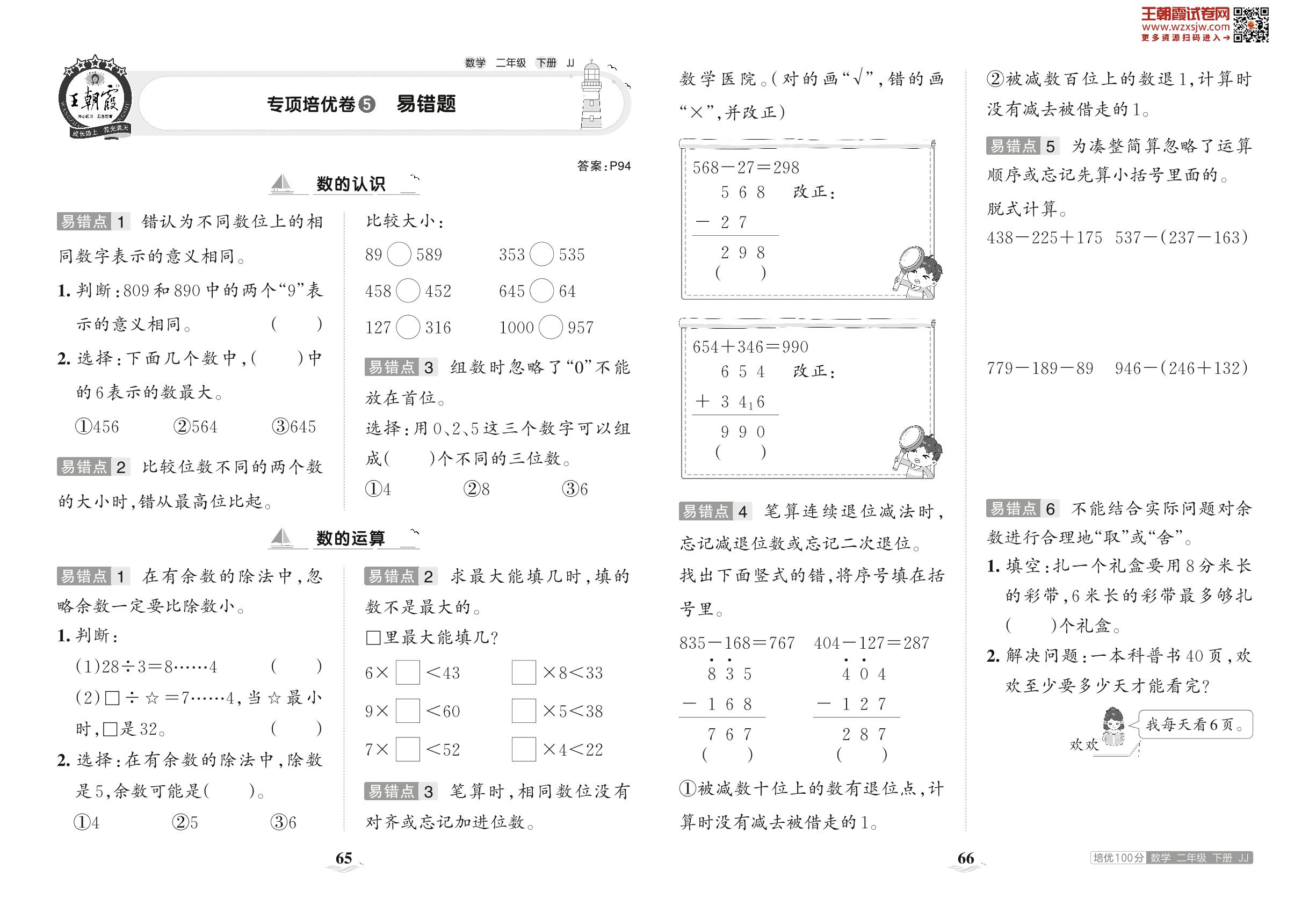 2023下册二年级数学冀教版 专项培优卷5 易错题
