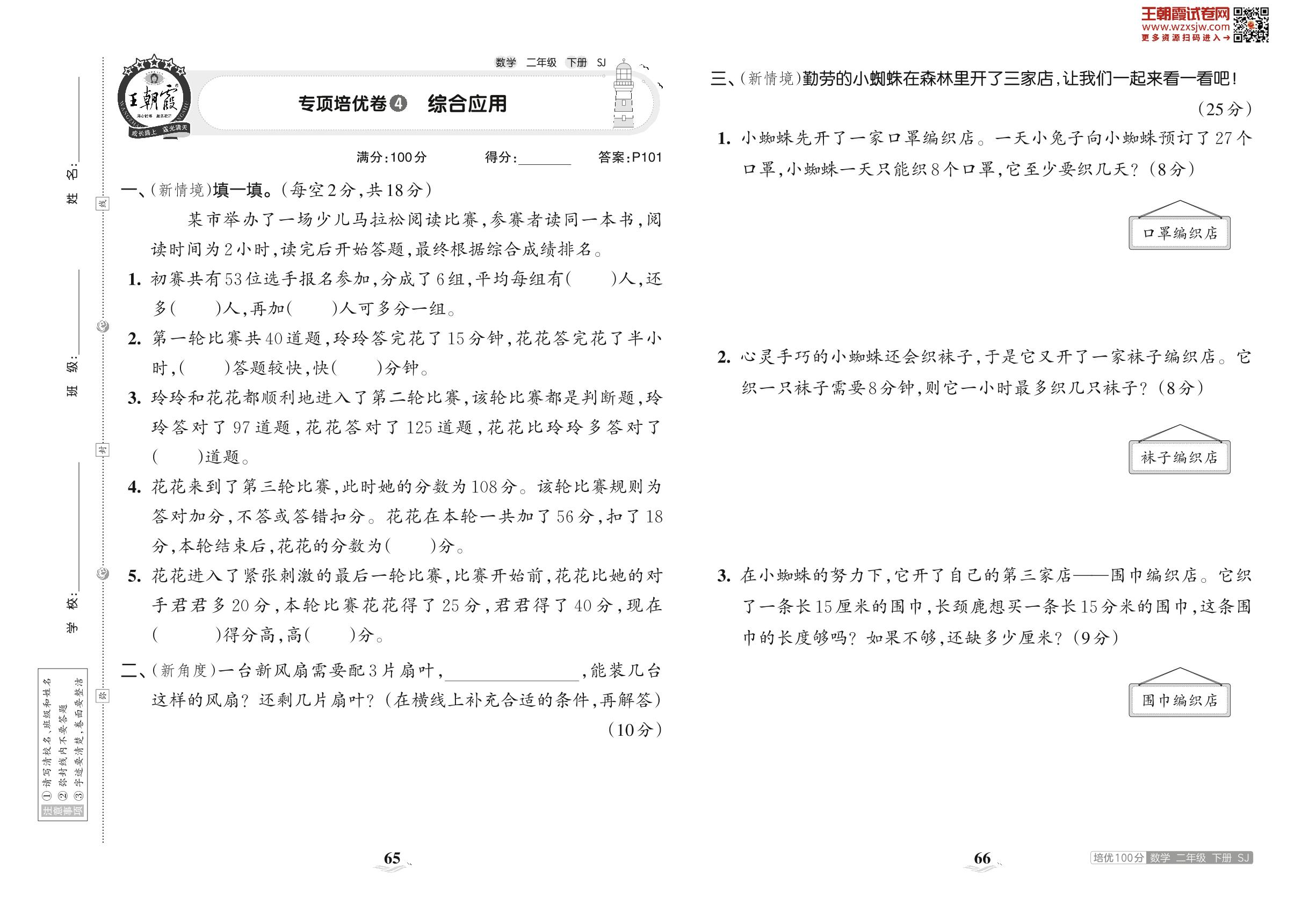 2023下册二年级数学苏教版 专项培优卷4 综合应用