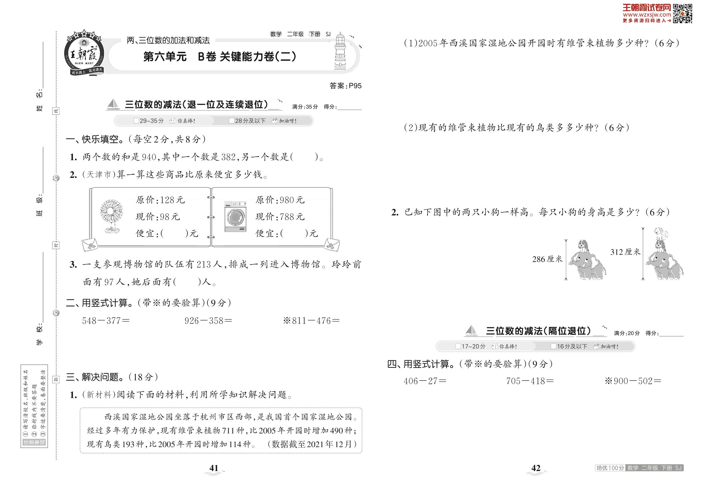 2023下册二年级数学苏教版 第六单元 B卷 关键能力卷(二)
