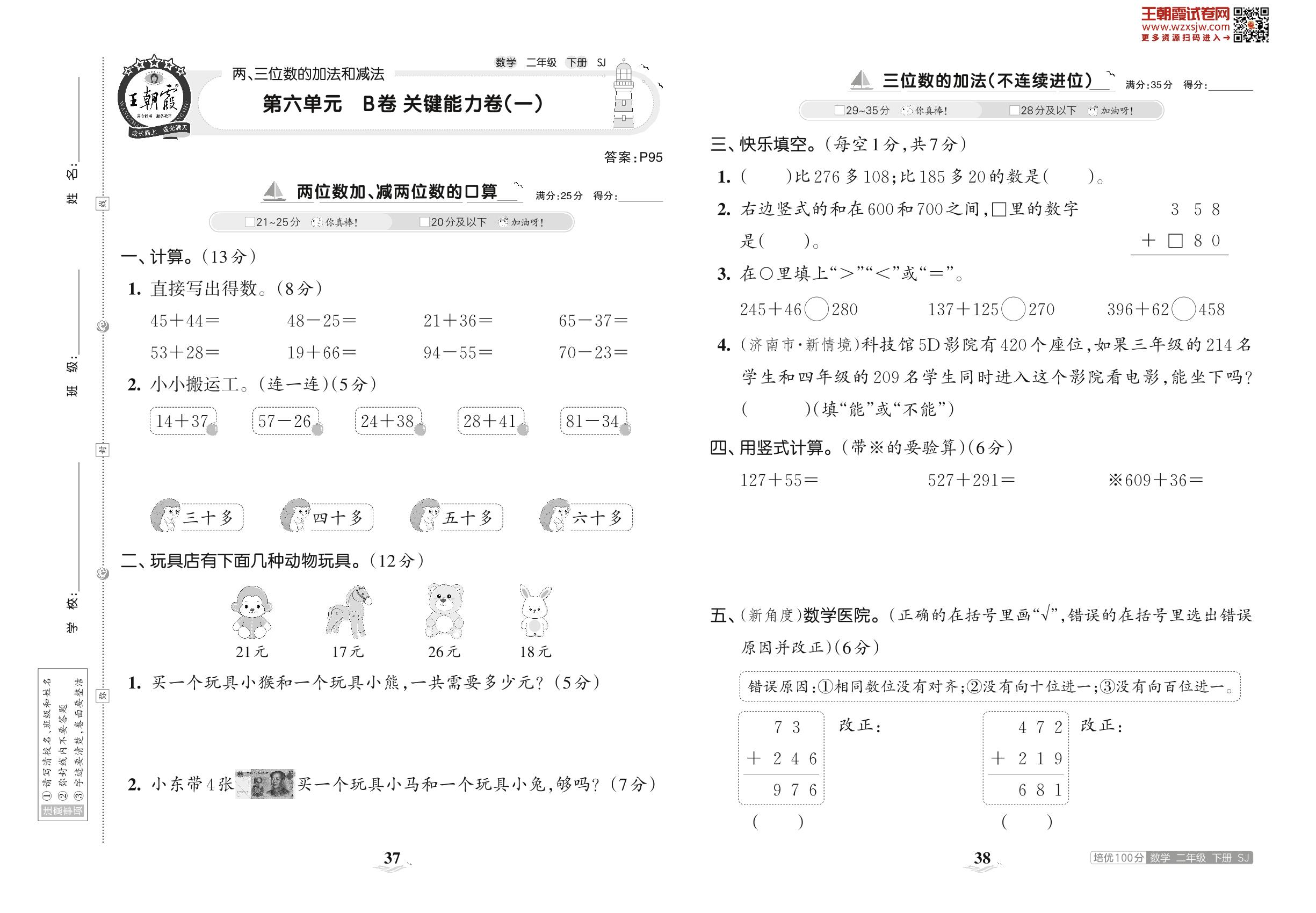 2023下册二年级数学苏教版 第六单元 B卷 关键能力卷(一)