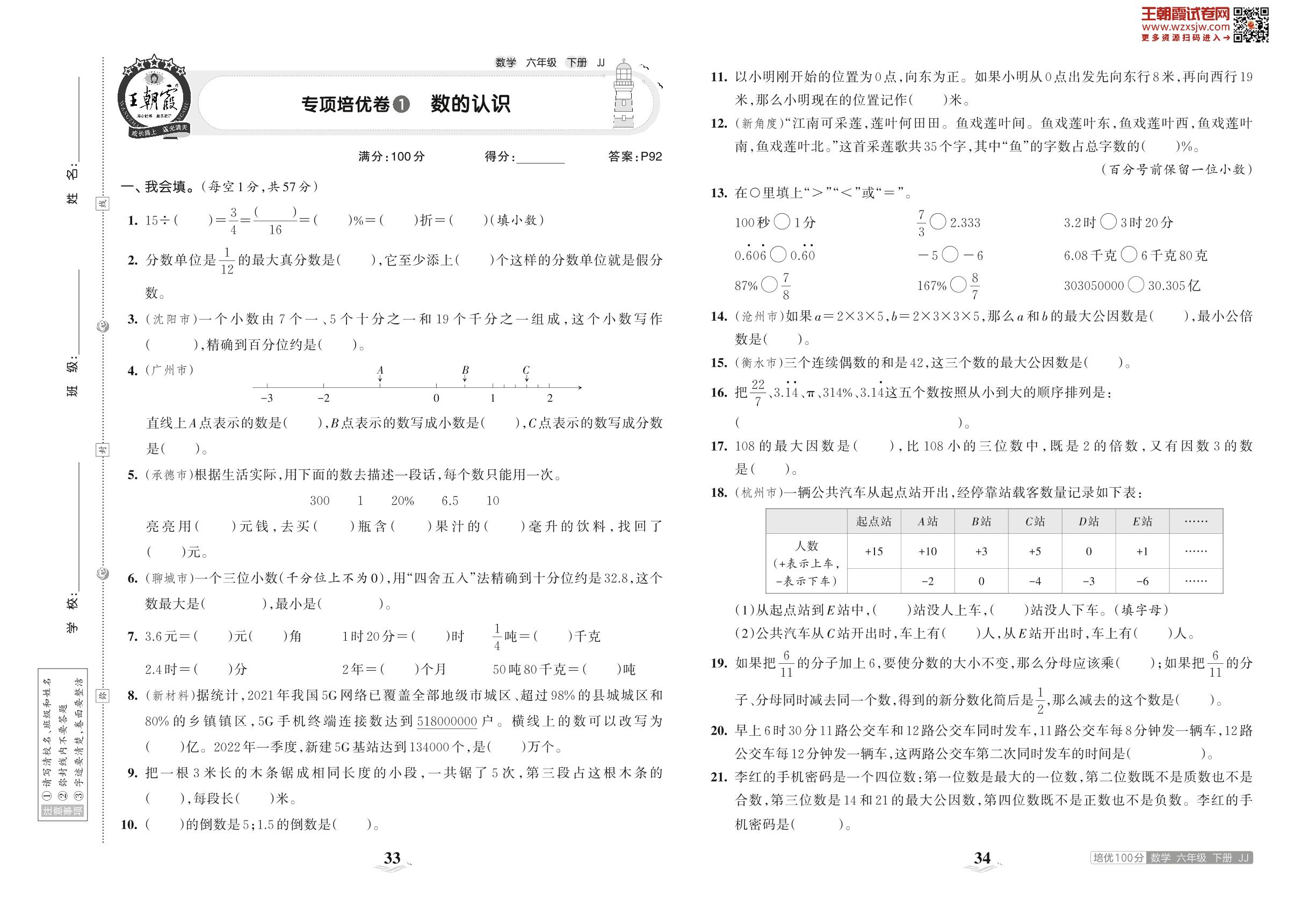 2023下册六年级数学冀教版 专项培优卷1 数的认识