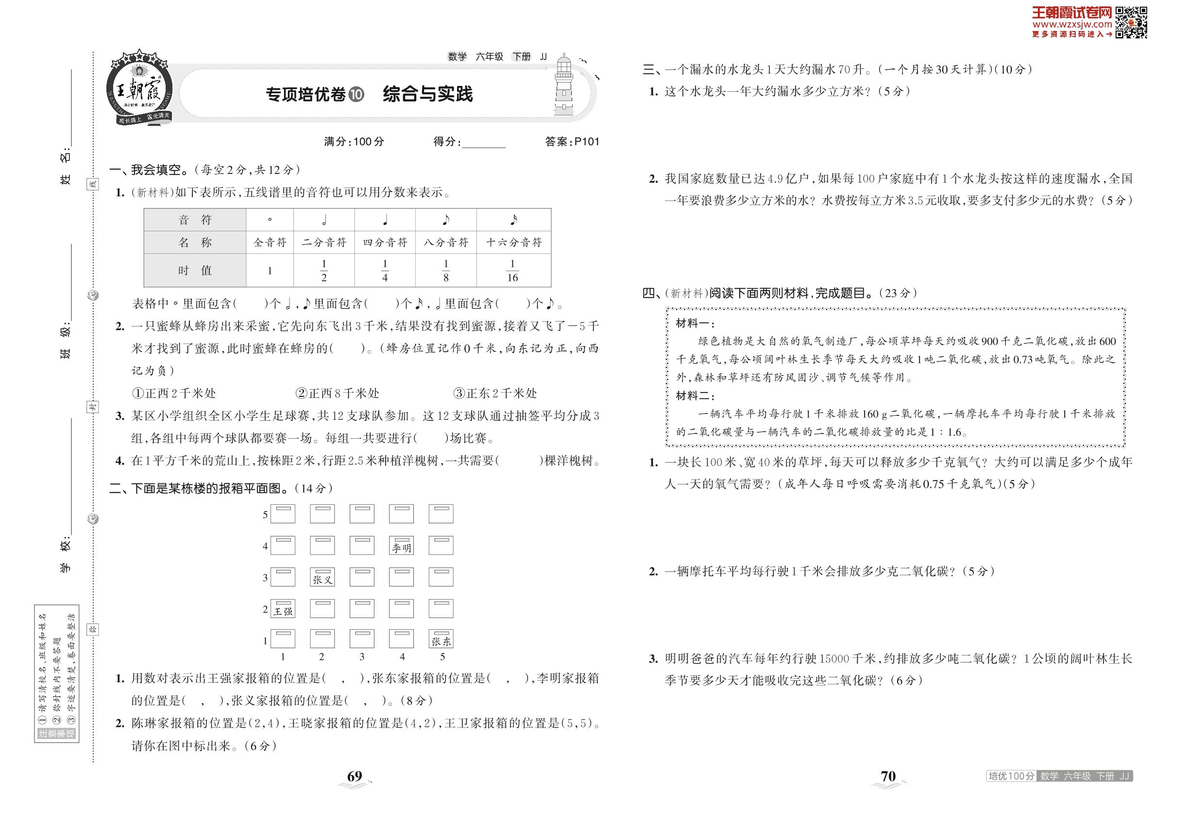 2023下册六年级数学冀教版 专项培优卷10 综合与实践