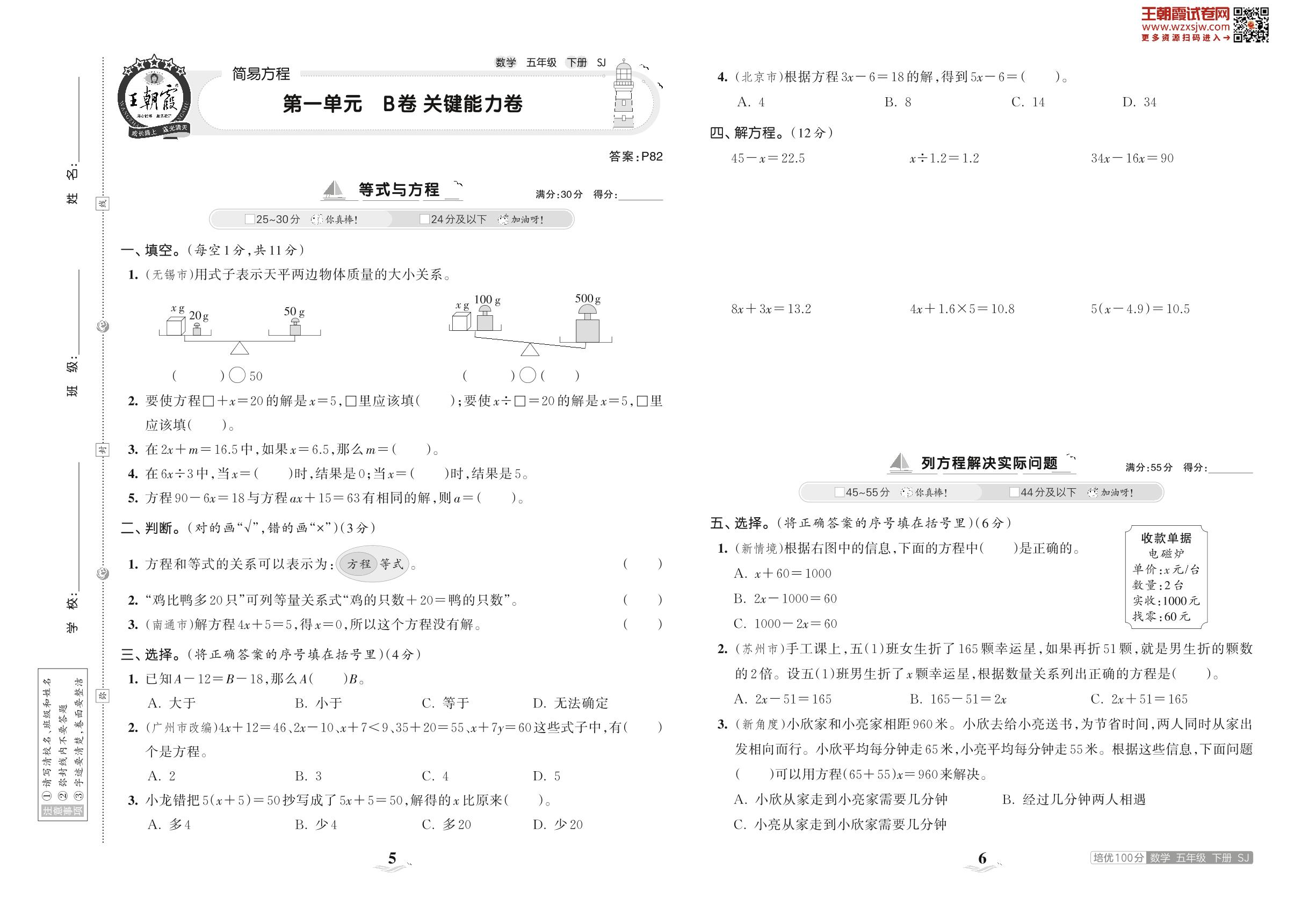 五年级数学苏教版下册单元卷