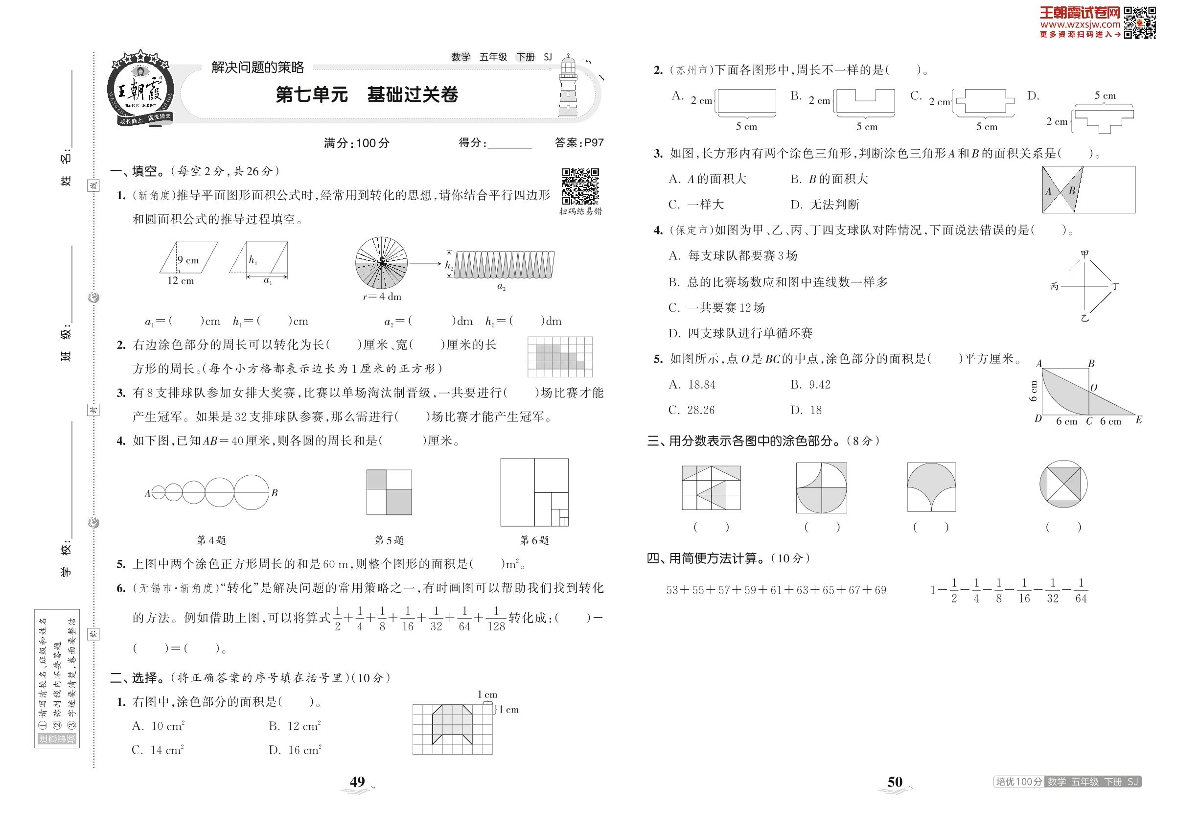 2023下册五年级数学苏教版 第七单元 基础过关卷