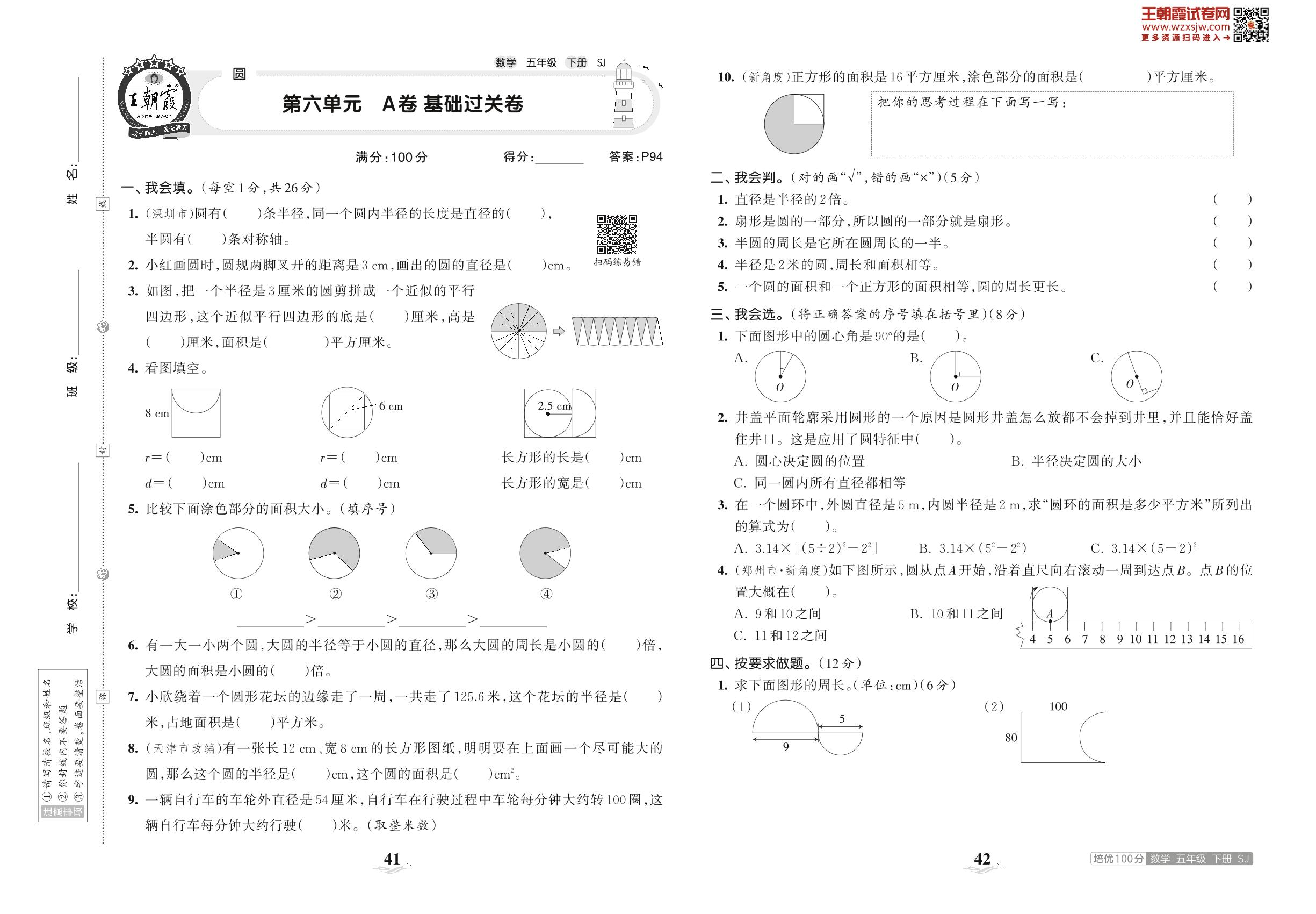 2023下册五年级数学苏教版 第六单元 A卷 基础过关卷