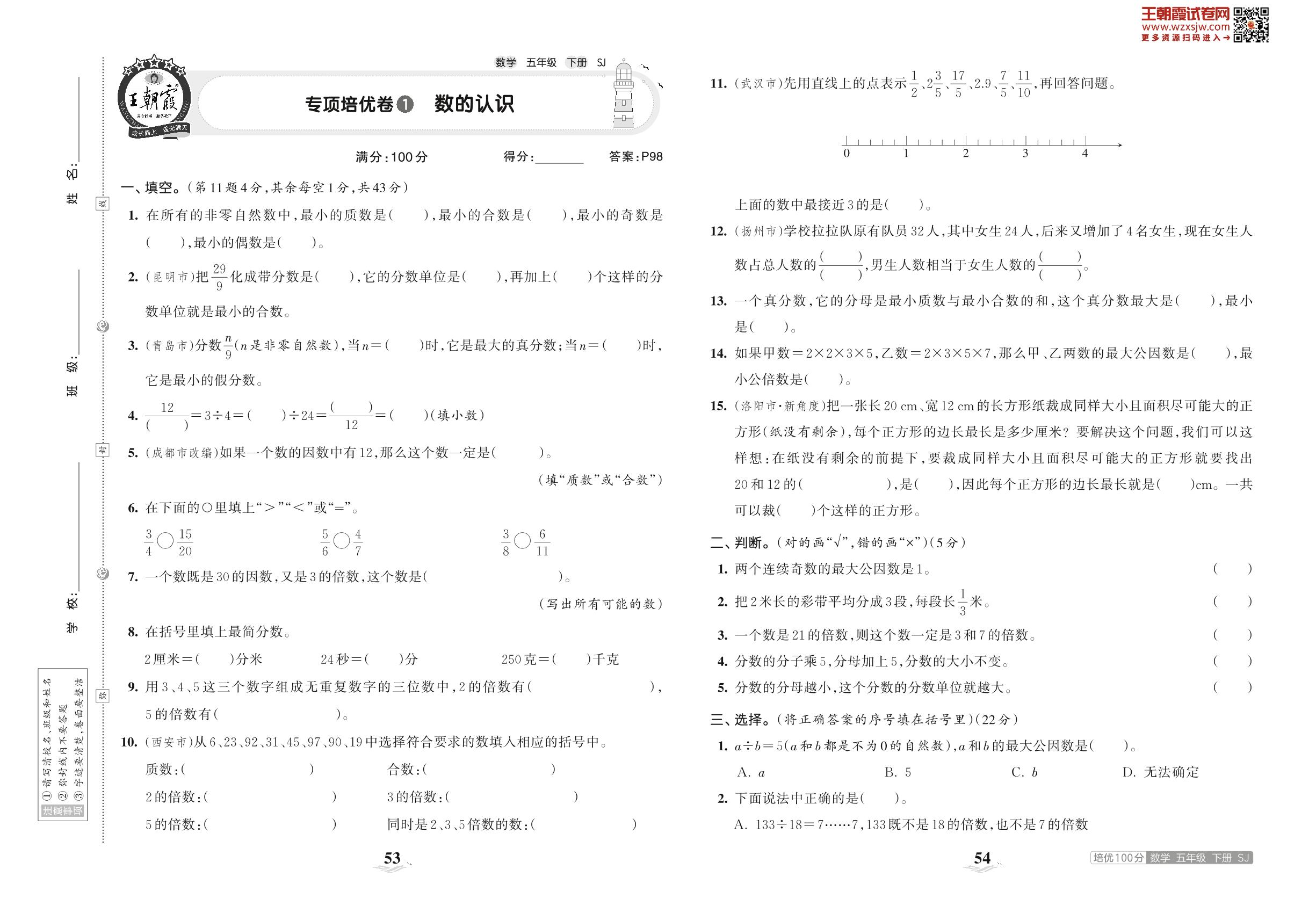 2023下册五年级数学苏教版 专项培优卷1 数的认识