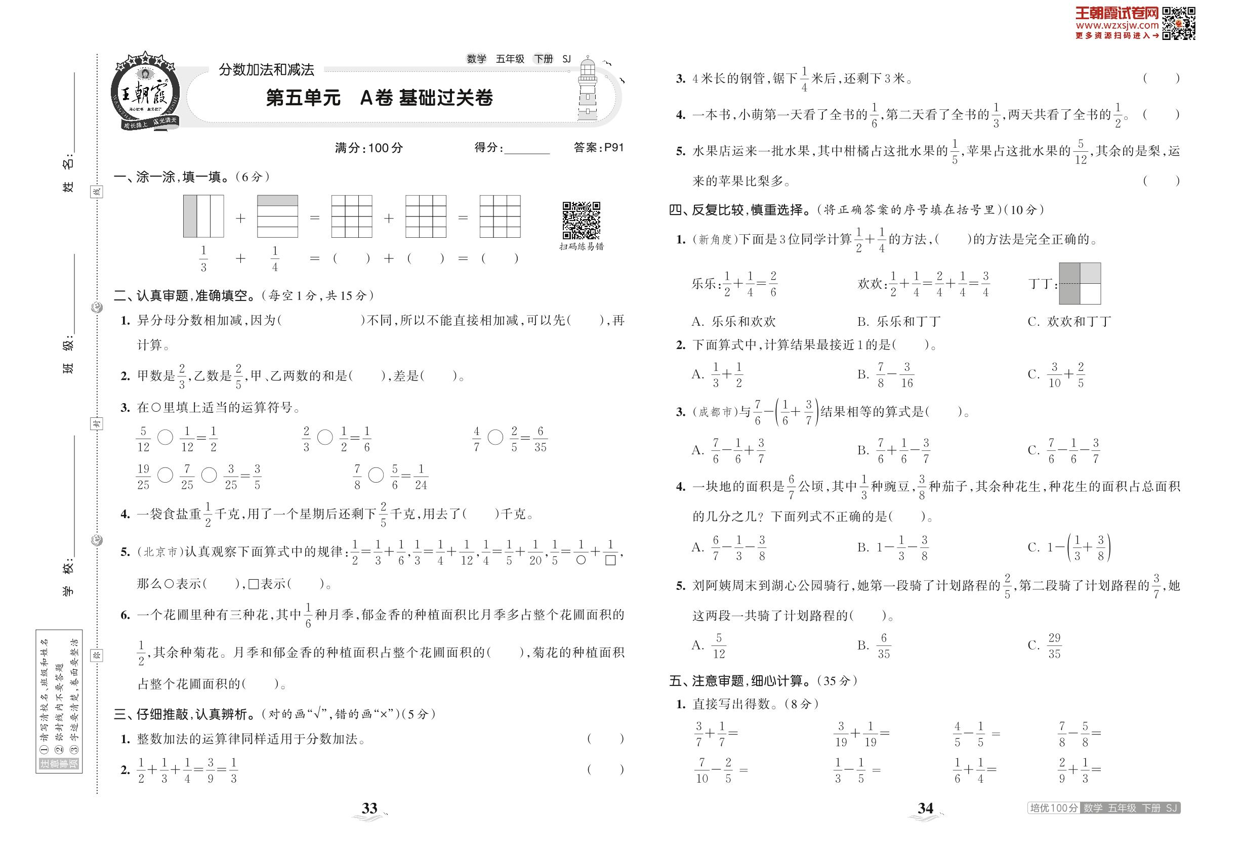 2023下册五年级数学苏教版 第五单元 A卷 基础过关卷