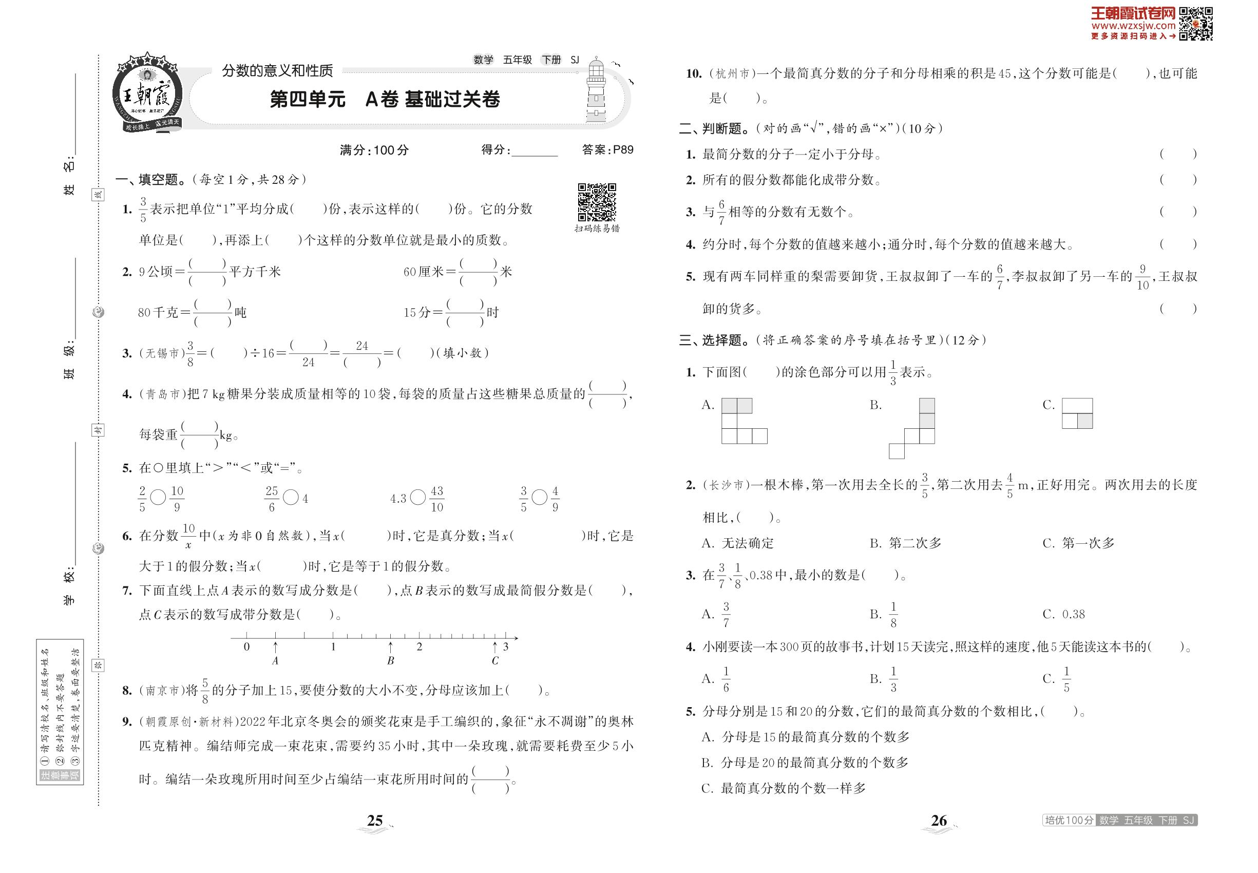 五年级数学苏教版下册单元卷