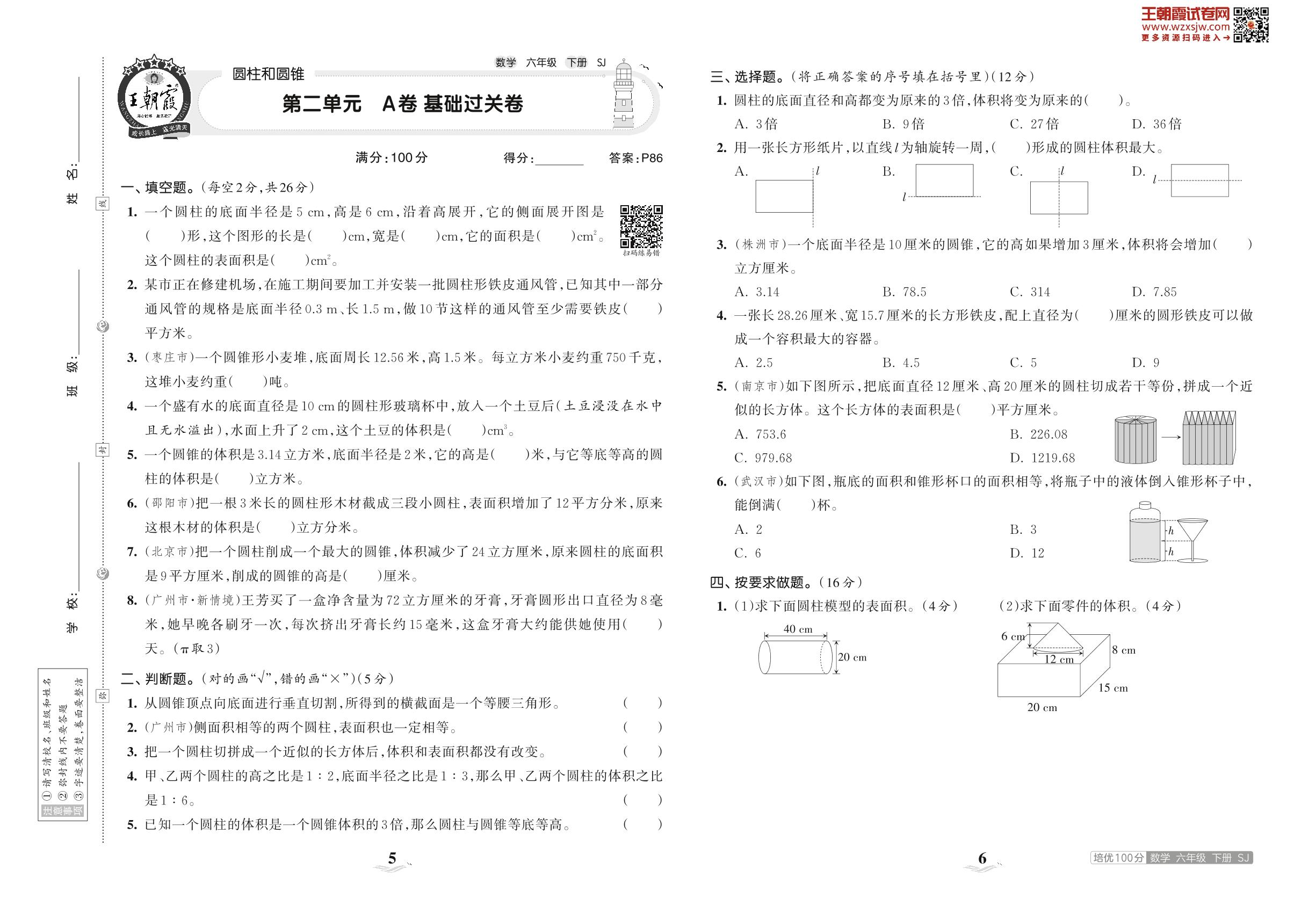 2023下册六年级数学苏教版 第二单元 A卷 基础过关卷