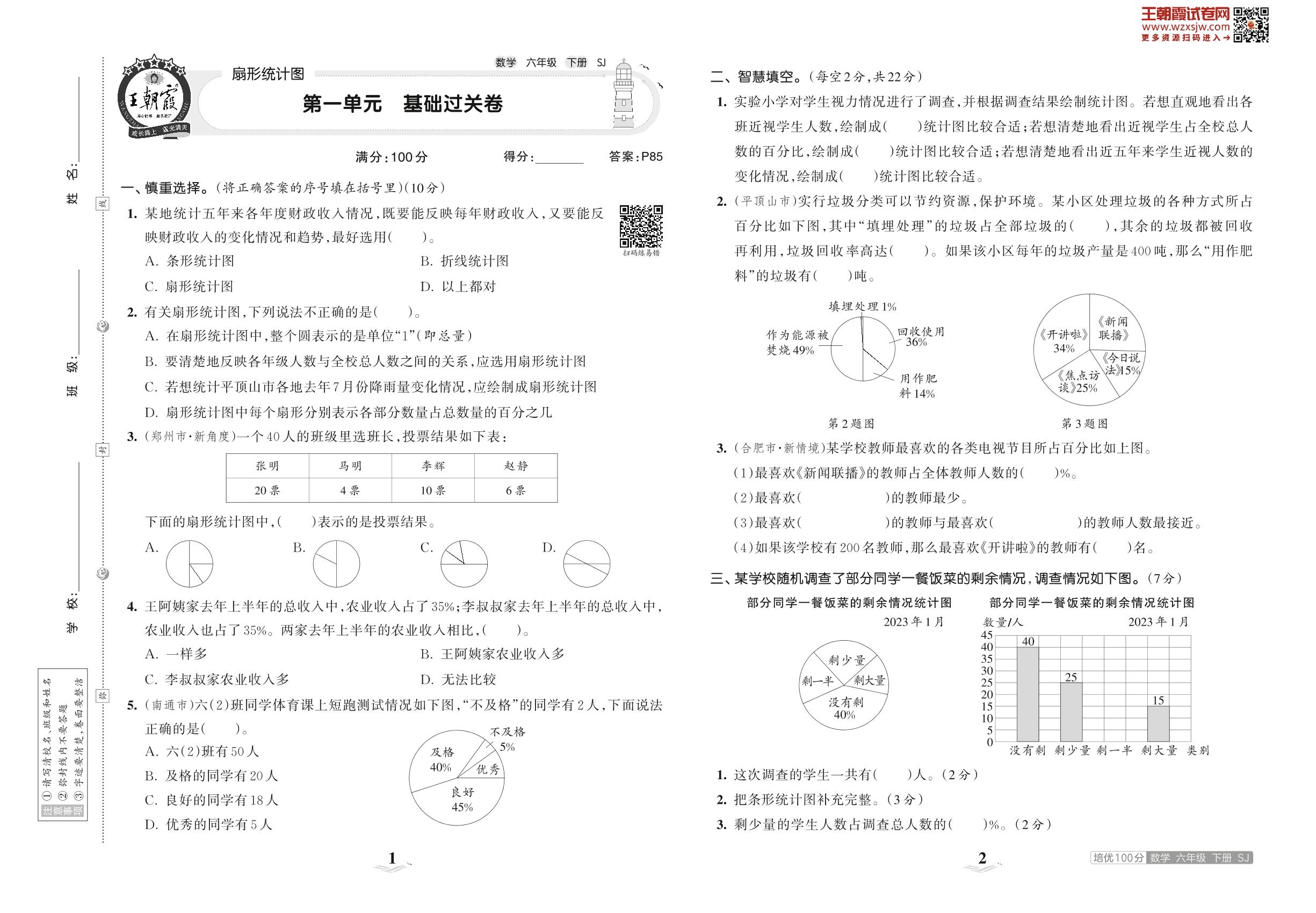 2023下册六年级数学苏教版 第一单元 基础过关卷