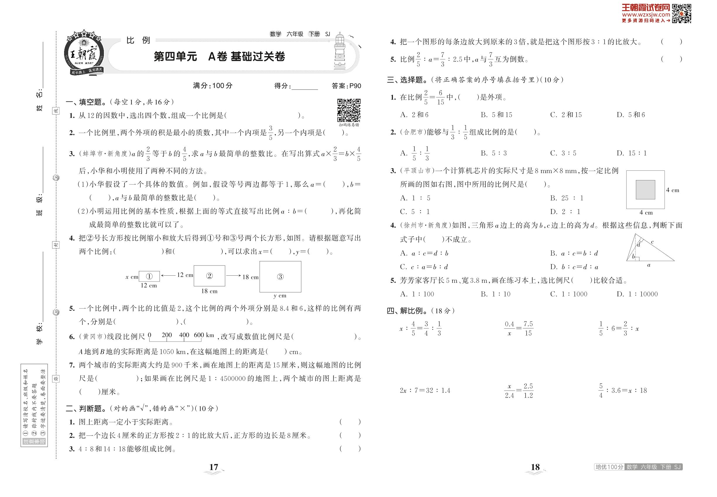 六年级数学苏教版下册单元卷