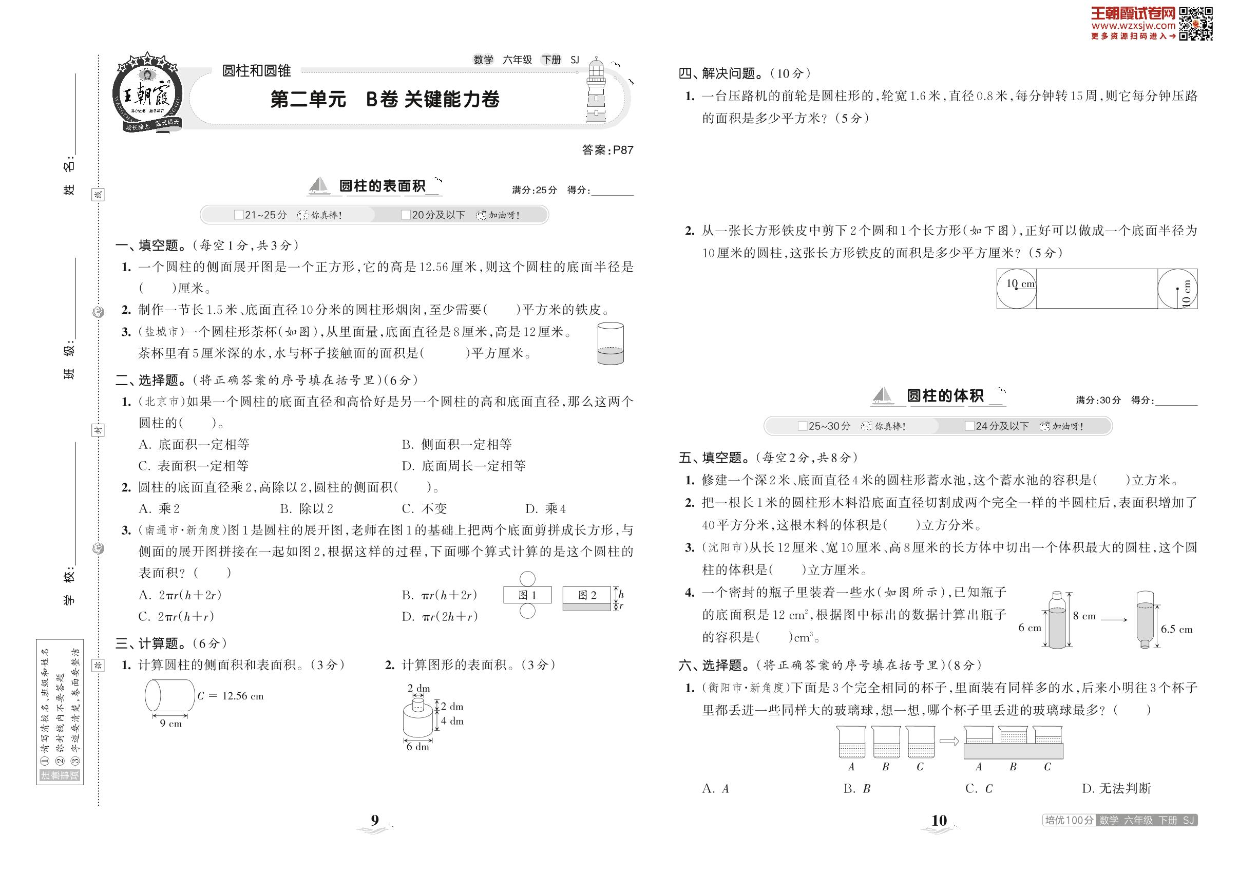 六年级数学苏教版下册单元卷