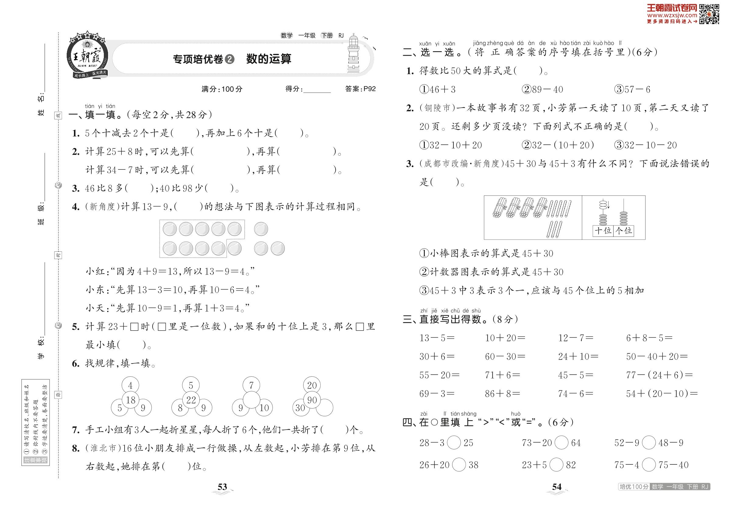 2023下册一年级数学人教版 专项培优卷2 数的运算
