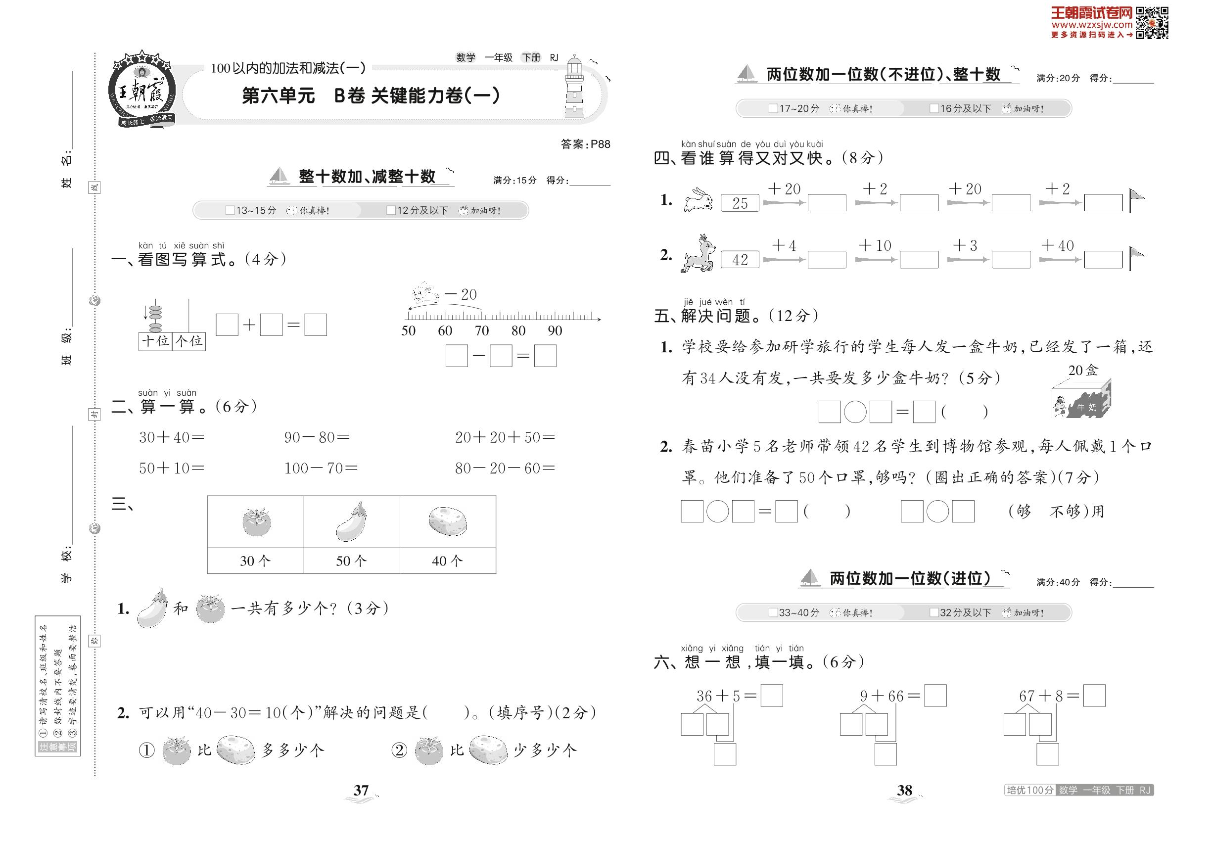 2023下册一年级数学人教版 第六单元 B卷 关键能力卷(一)