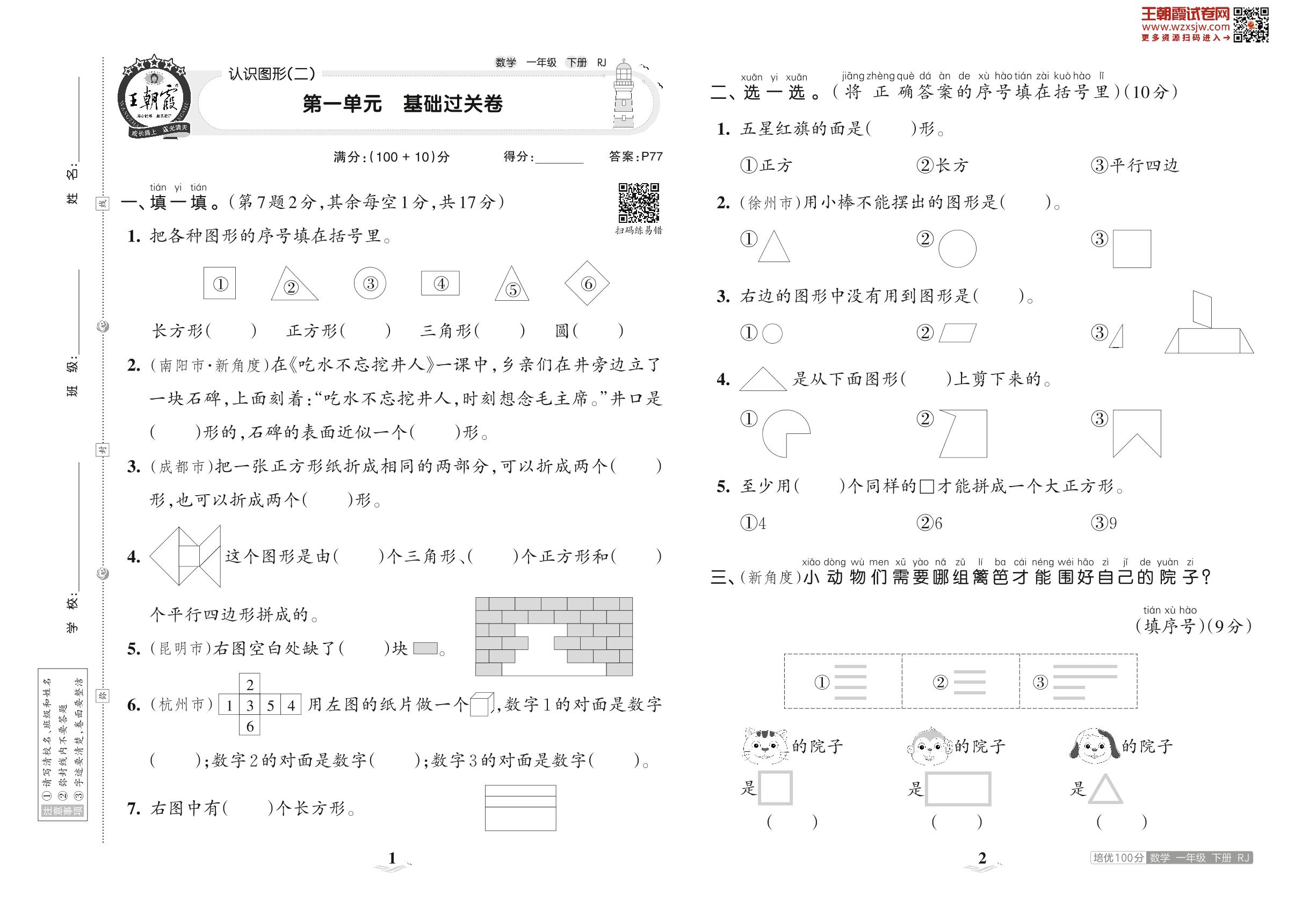 2023下册一年级数学人教版 第一单元 基础过关卷