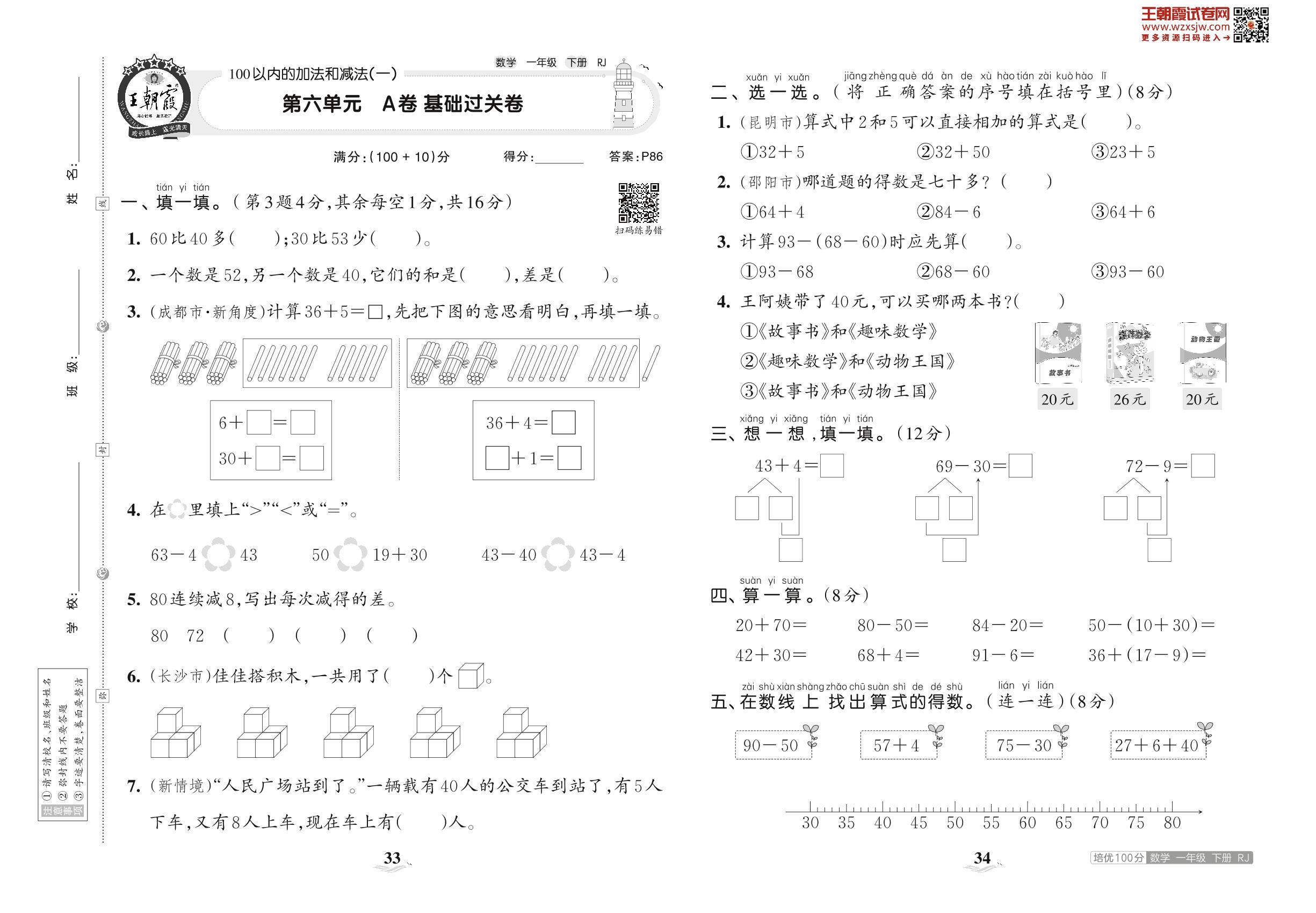 2023下册一年级数学人教版 第六单元 A卷 基础过关卷