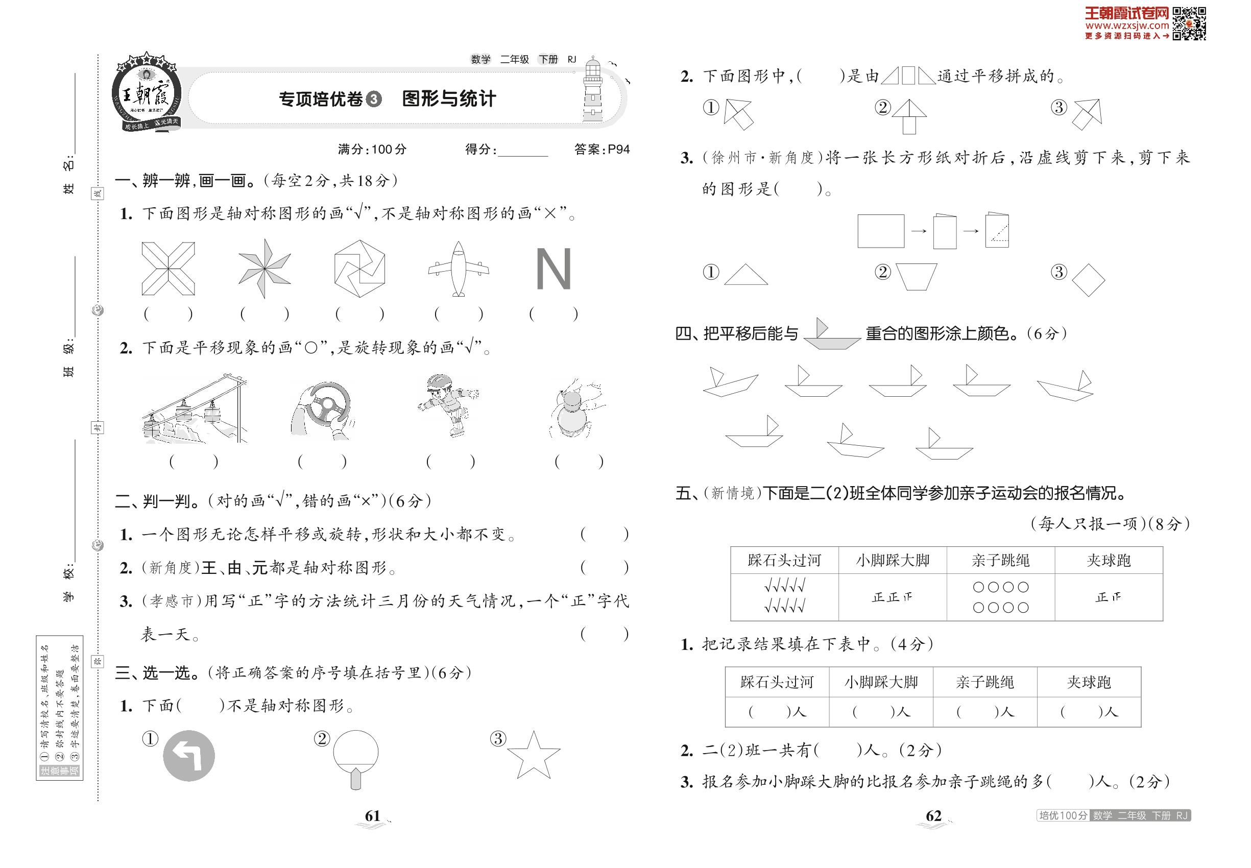 2023下册二年级数学人教版 专项培优卷3 图形与统计
