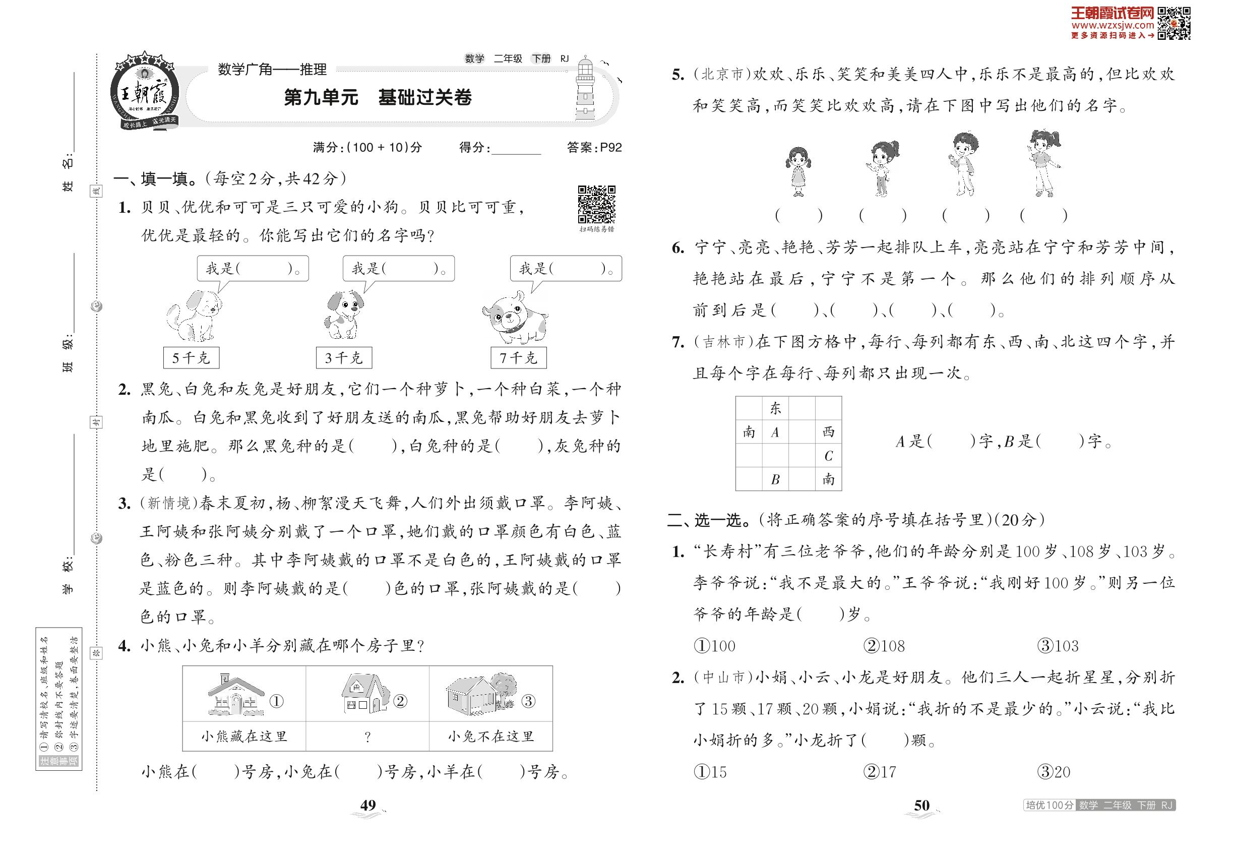 2023下册二年级数学人教版 第九单元 基础过关卷