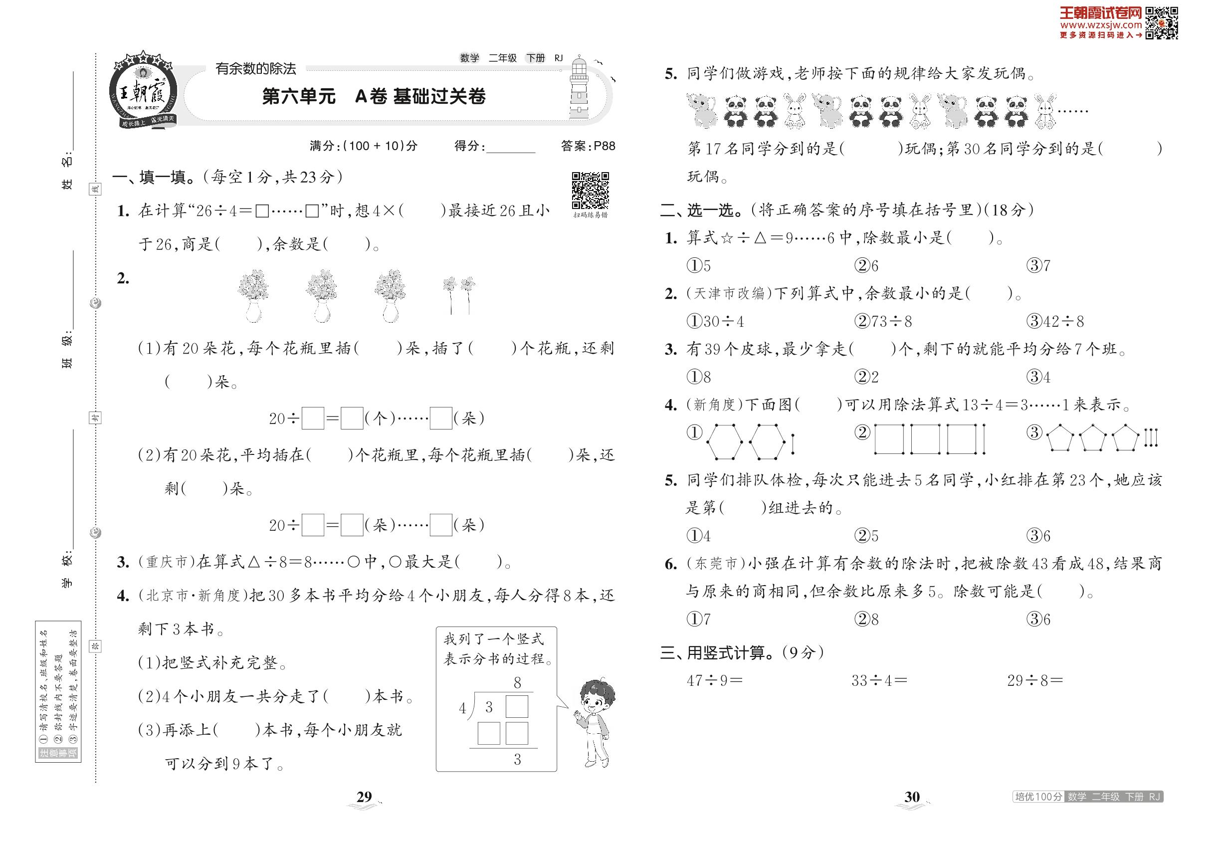 2023下册二年级数学人教版 第六单元 A卷 基础过关卷