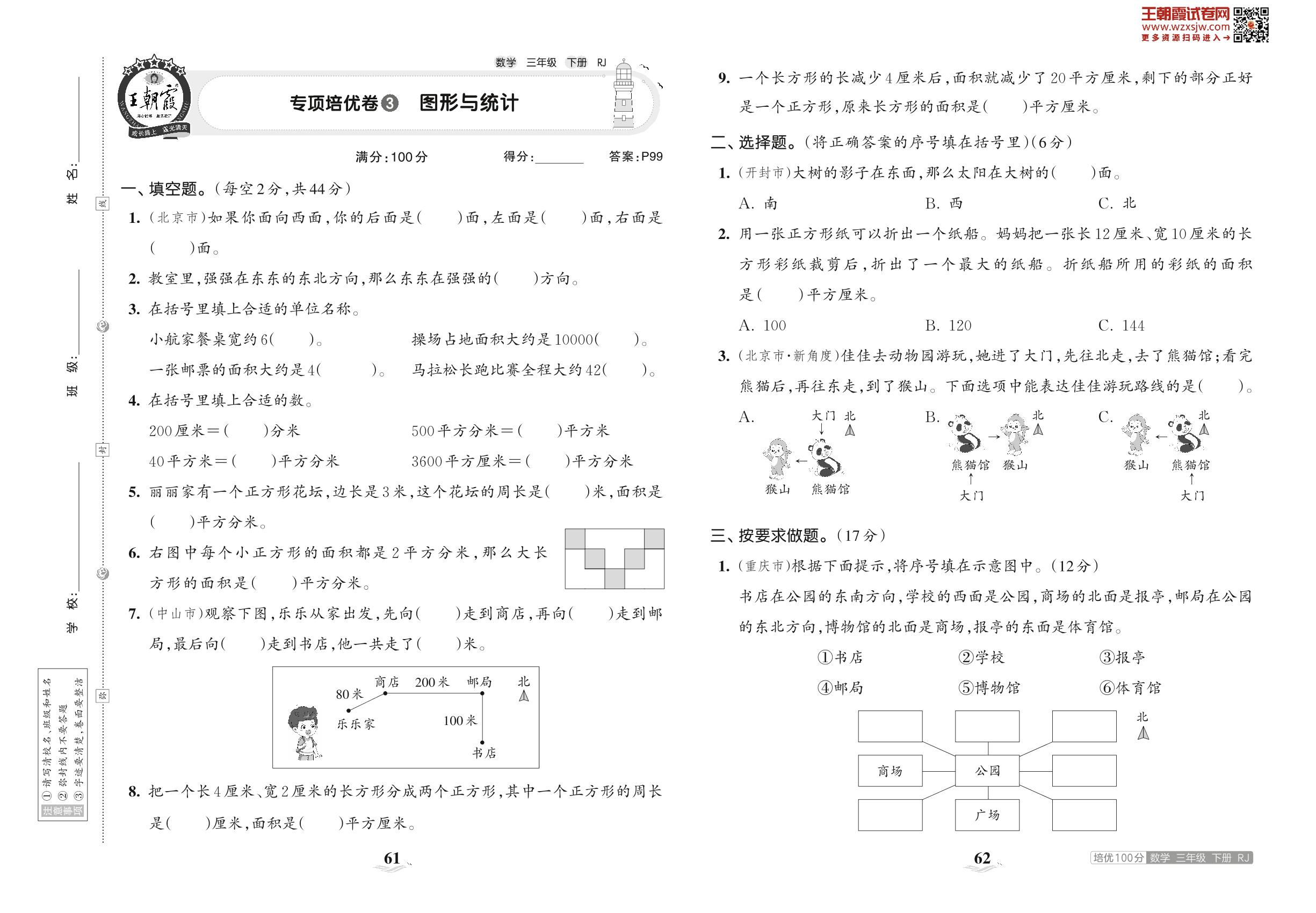 2023下册三年级数学人教版 专项培优卷3 图形与统计