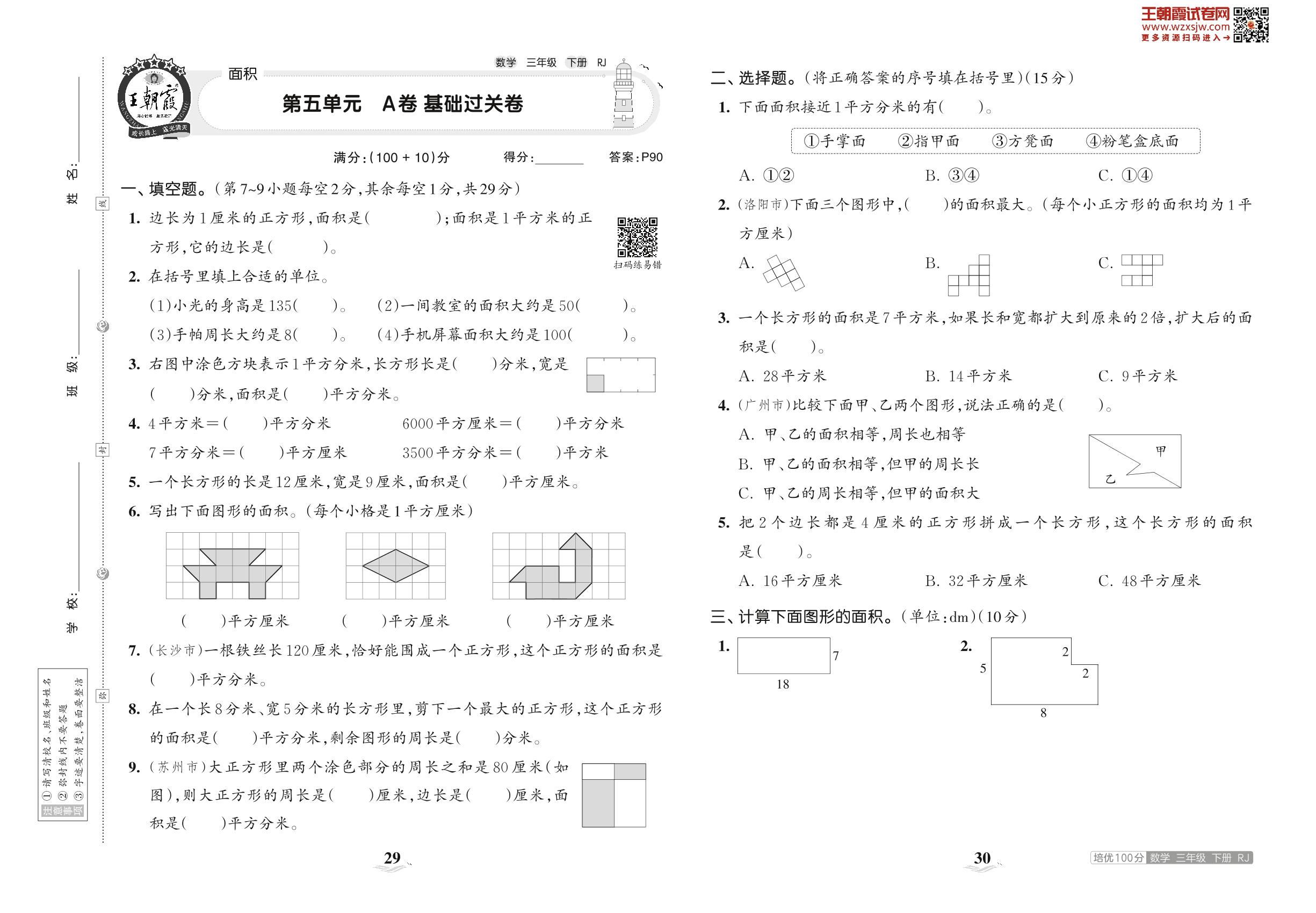 三年级数学人教版下册单元卷