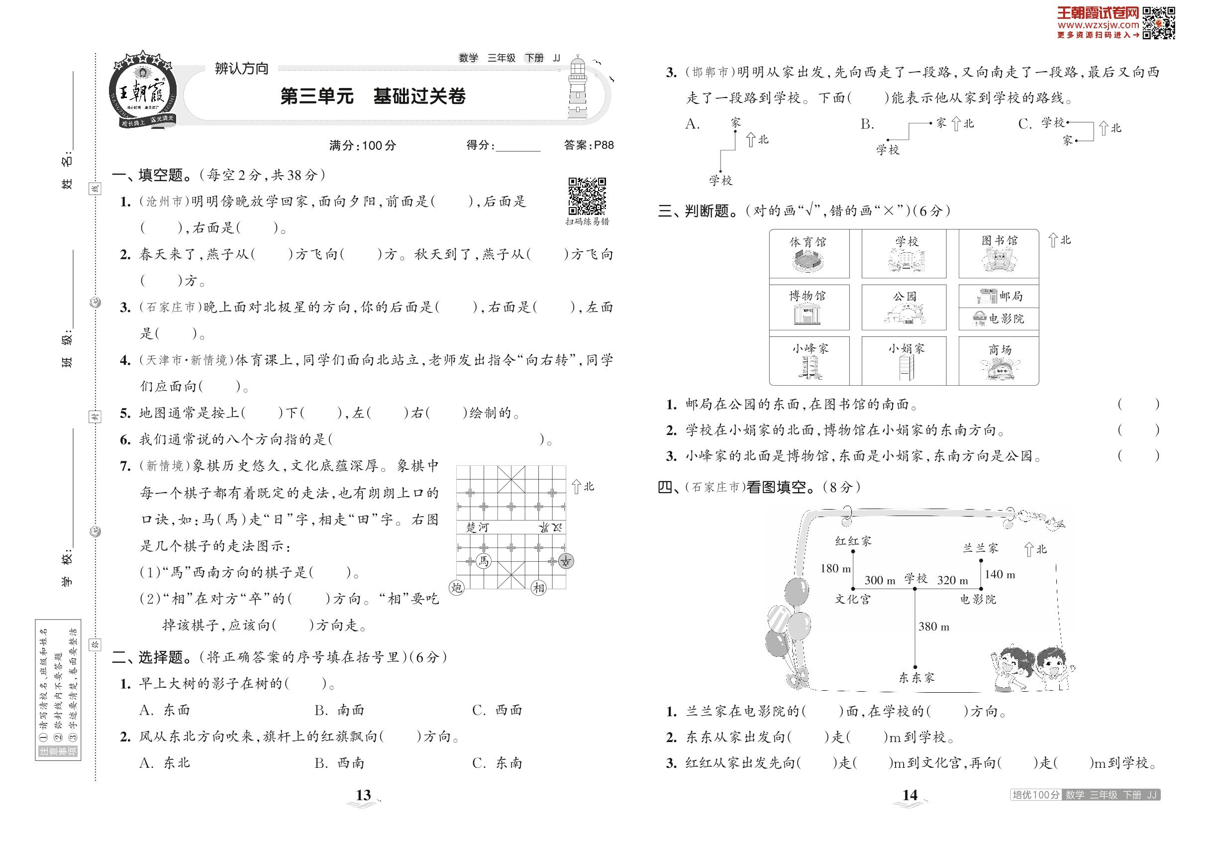 2023下册三年级数学冀教版 第三单元 基础过关卷