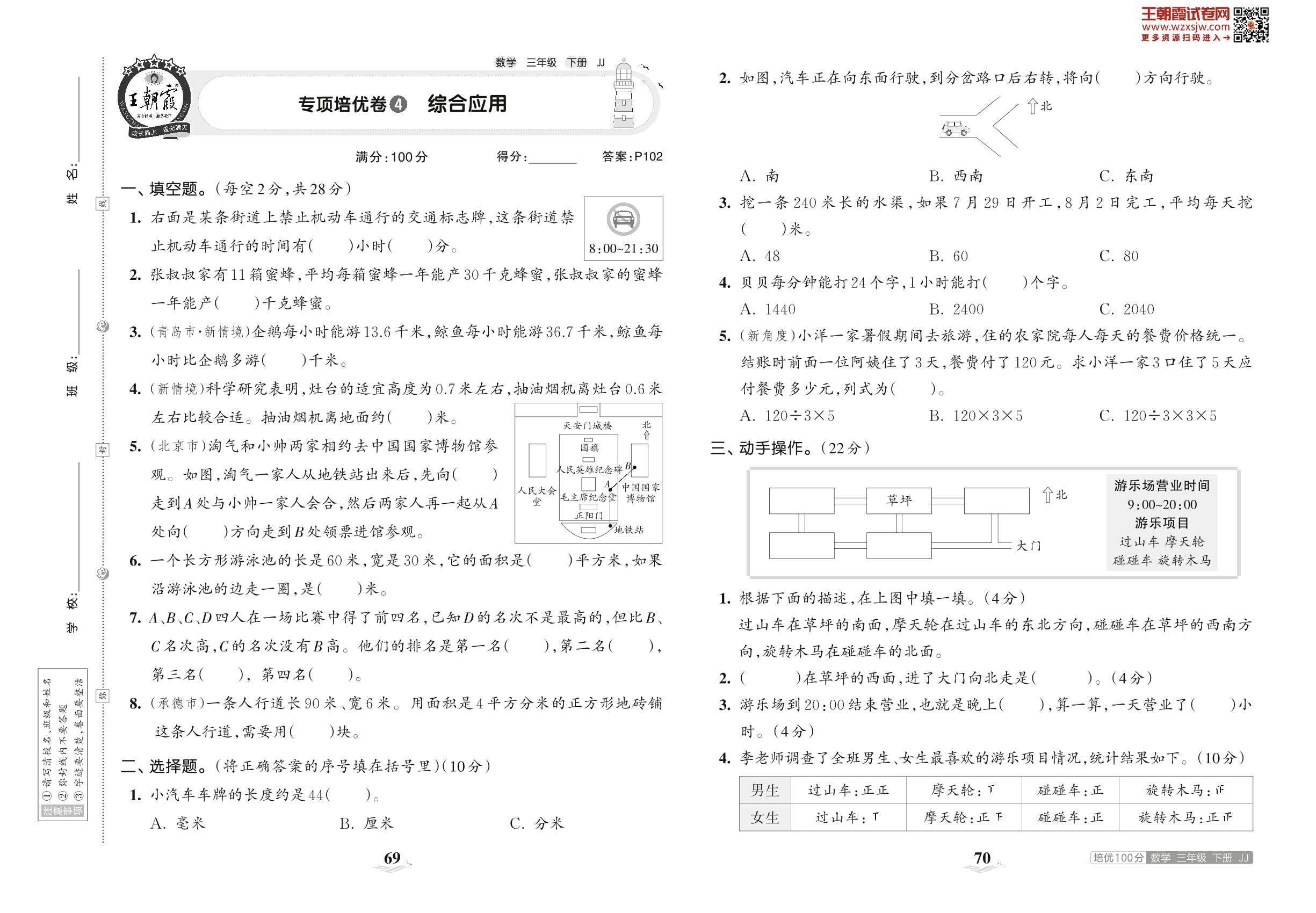 2023下册三年级数学冀教版 专项培优卷4 综合应用