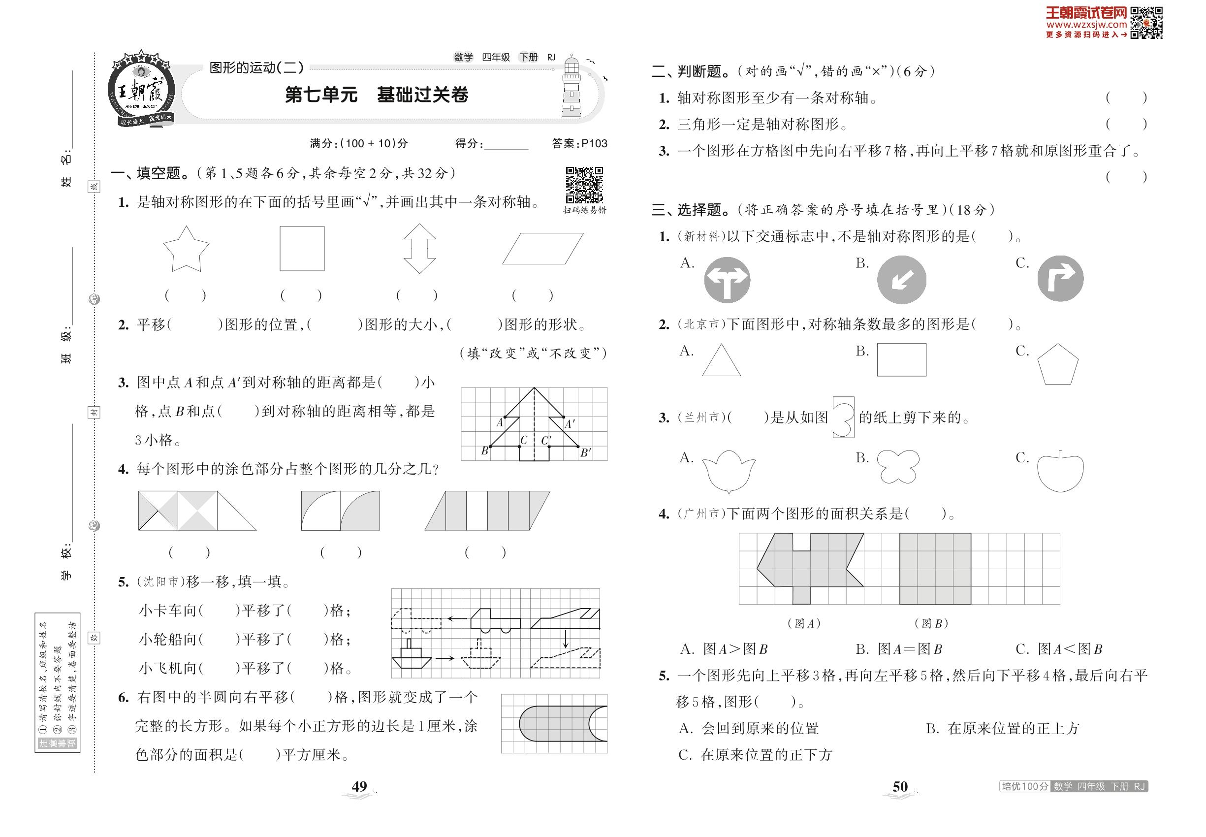 2023下册四年级数学人教版 第七单元 基础过关卷