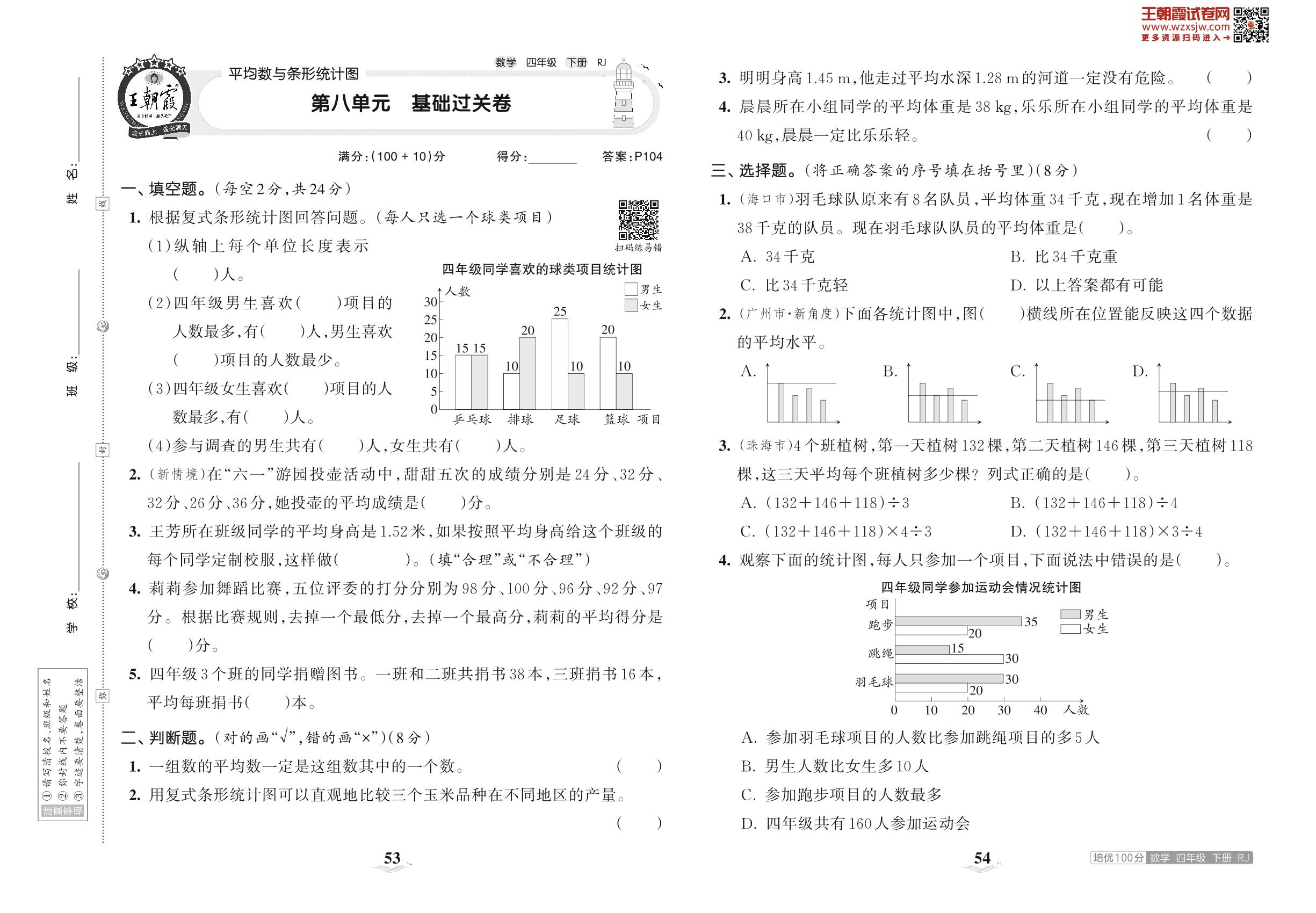 2023下册四年级数学人教版 第八单元 基础过关卷