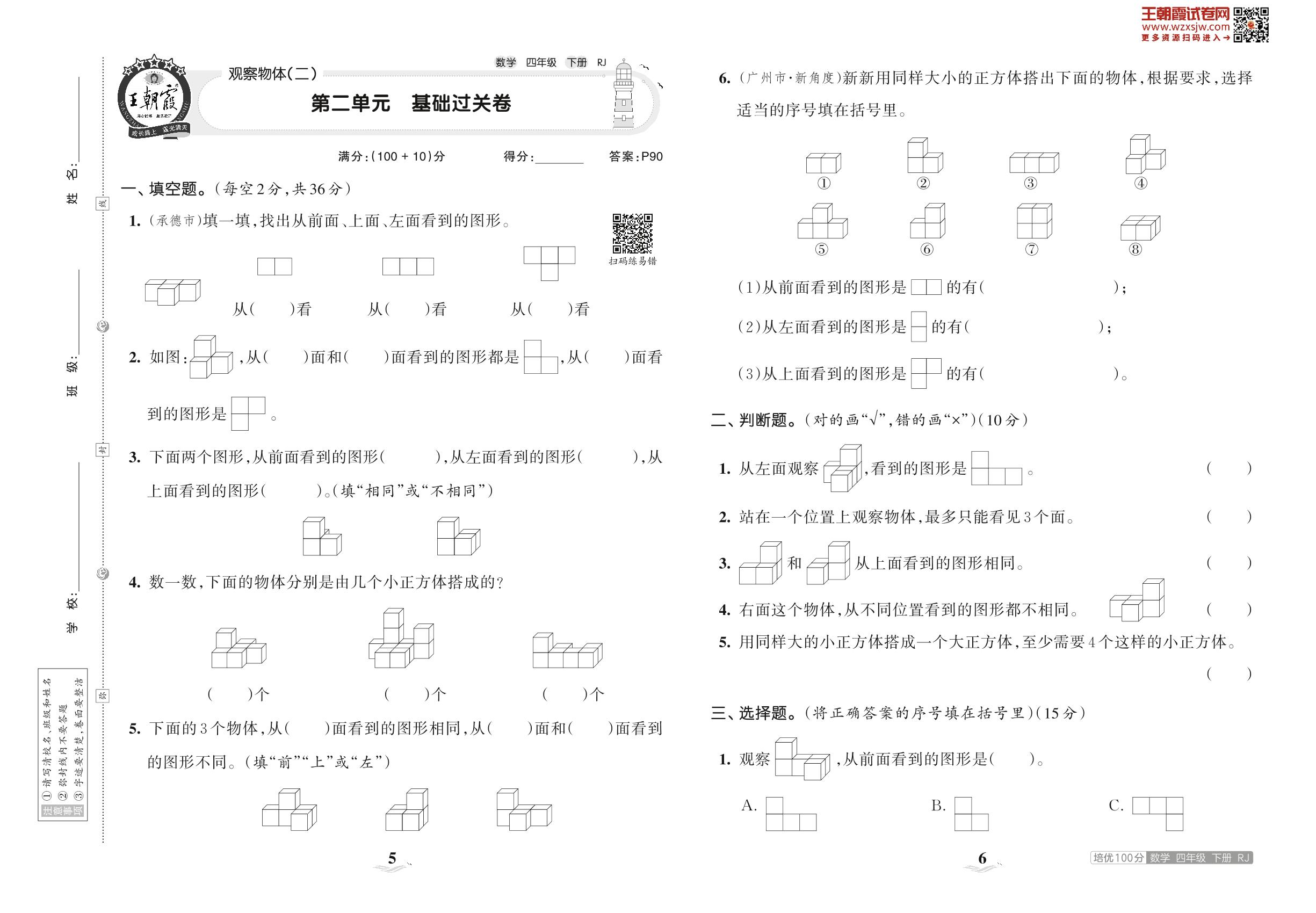 2023下册四年级数学人教版 第二单元 基础过关卷