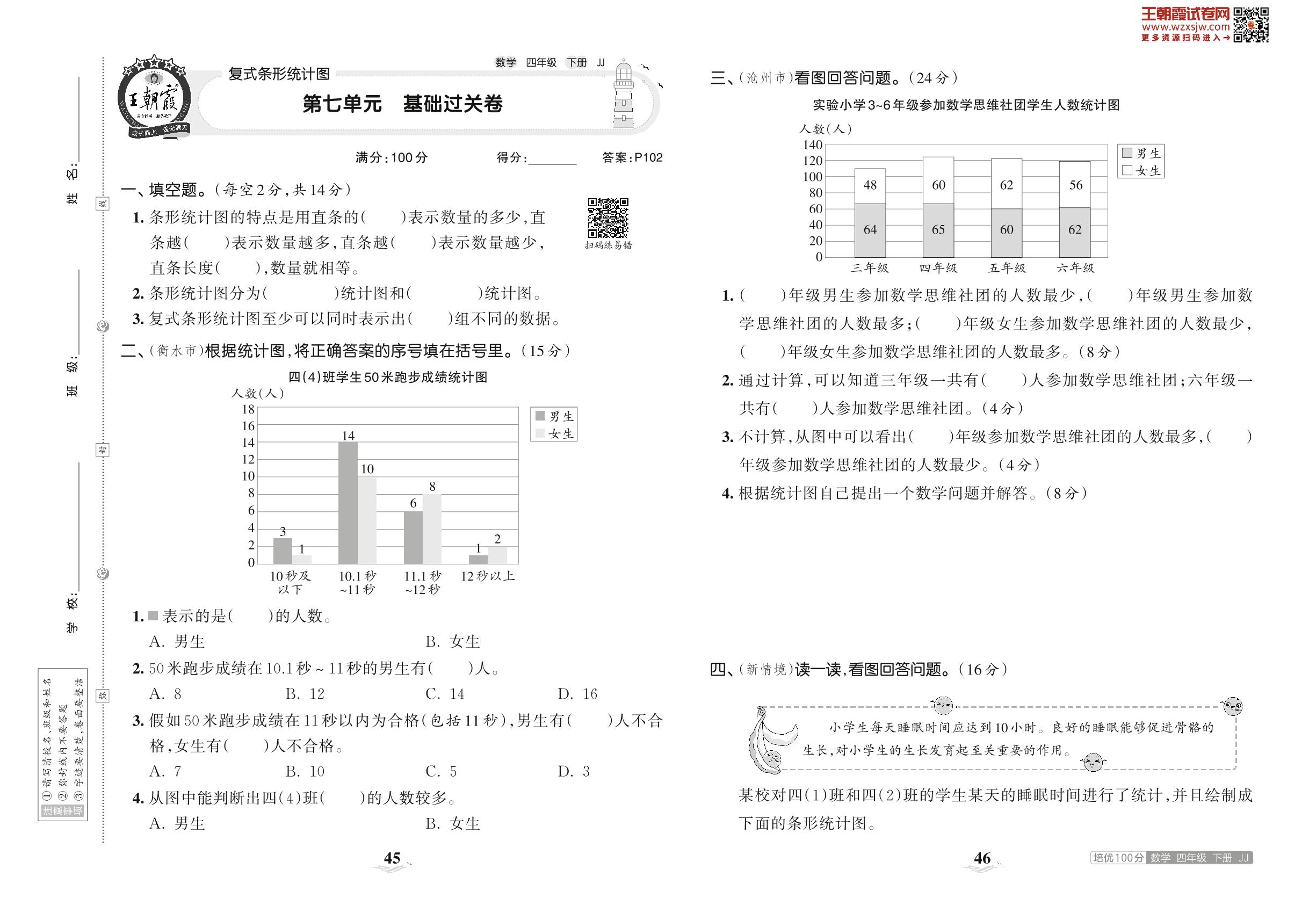 2023下册四年级数学冀教版 第七单元 基础过关卷