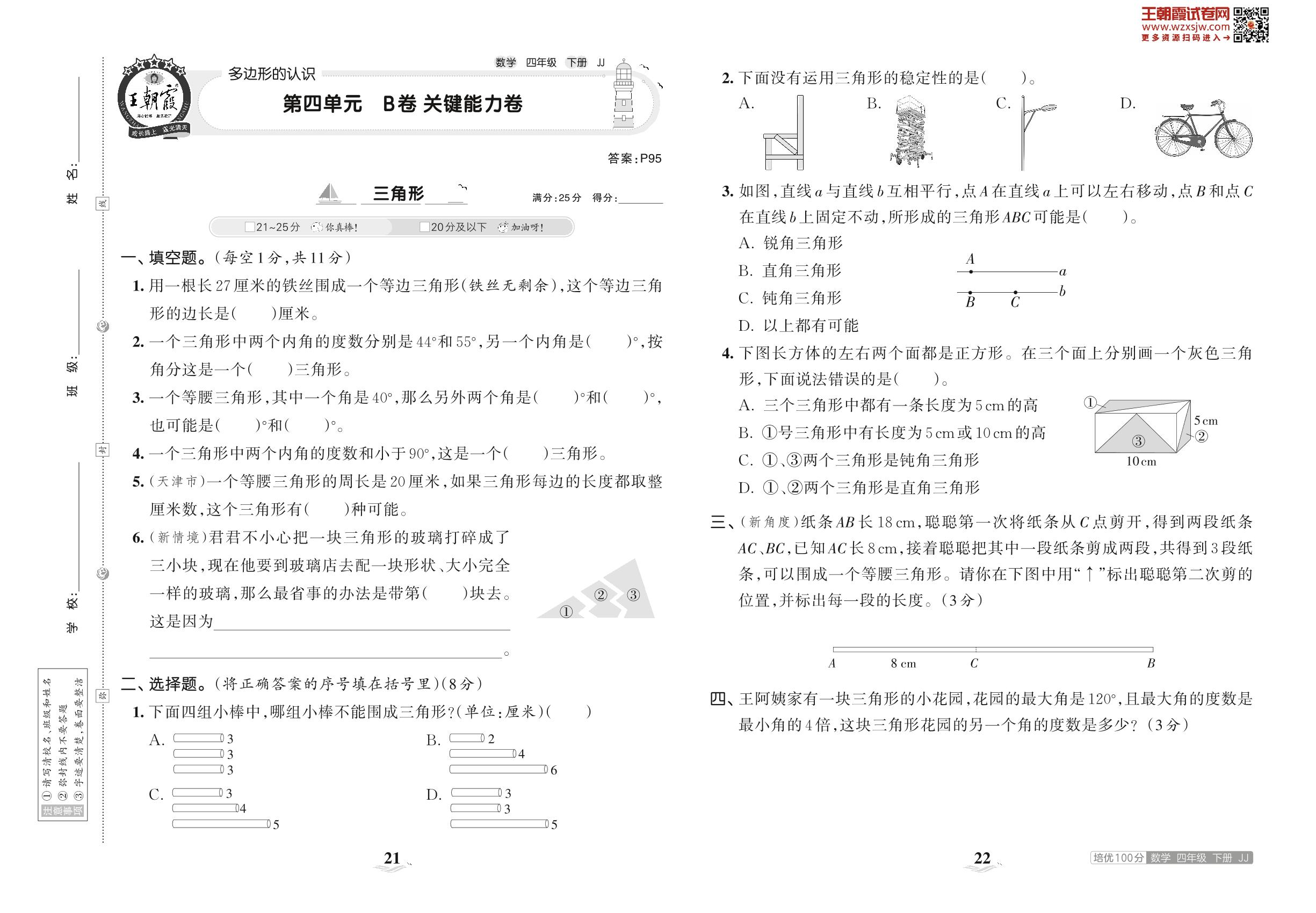 2023下册四年级数学冀教版 第四单元 B卷 关键能力卷