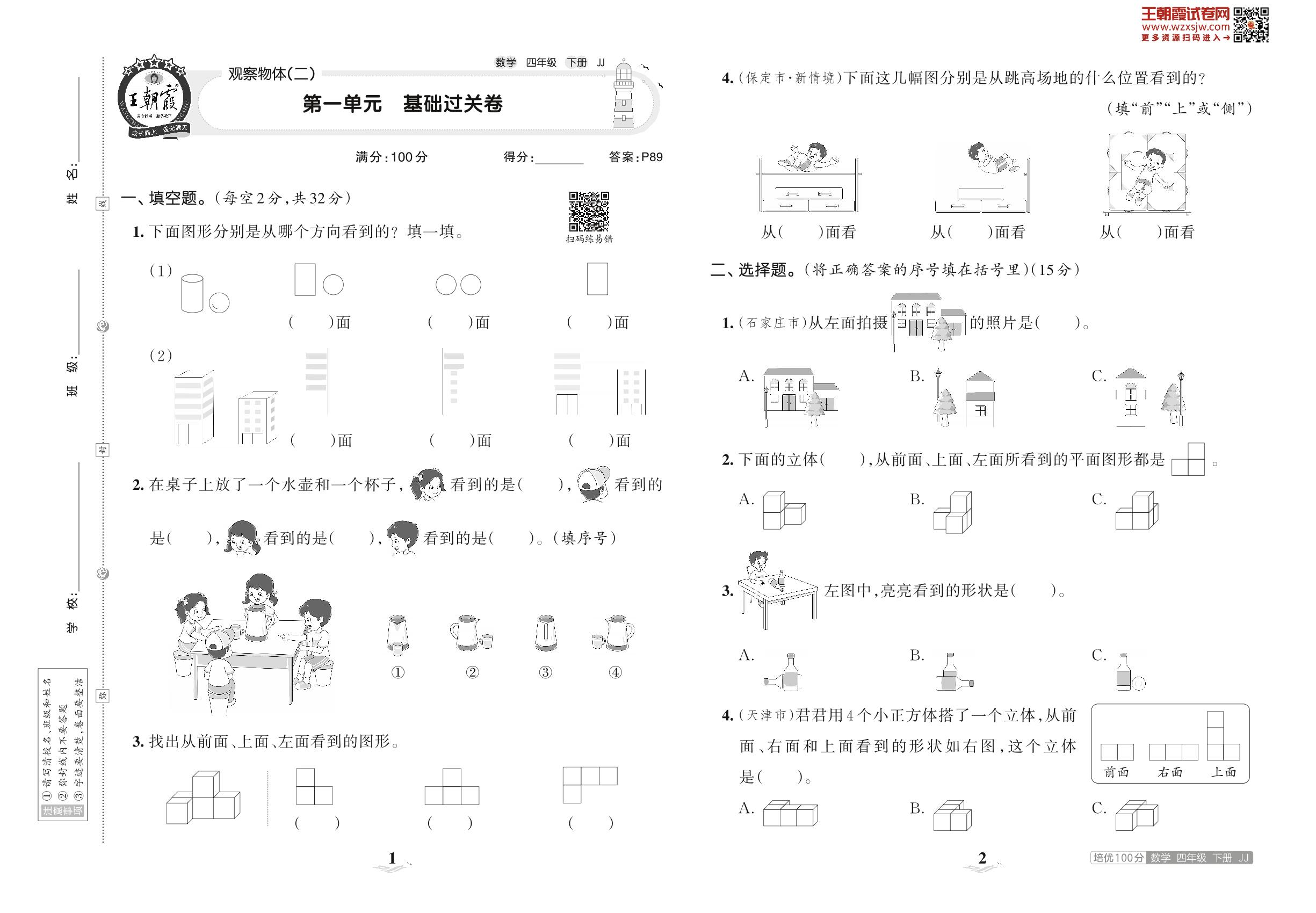 2023下册四年级数学冀教版 第一单元 基础过关卷