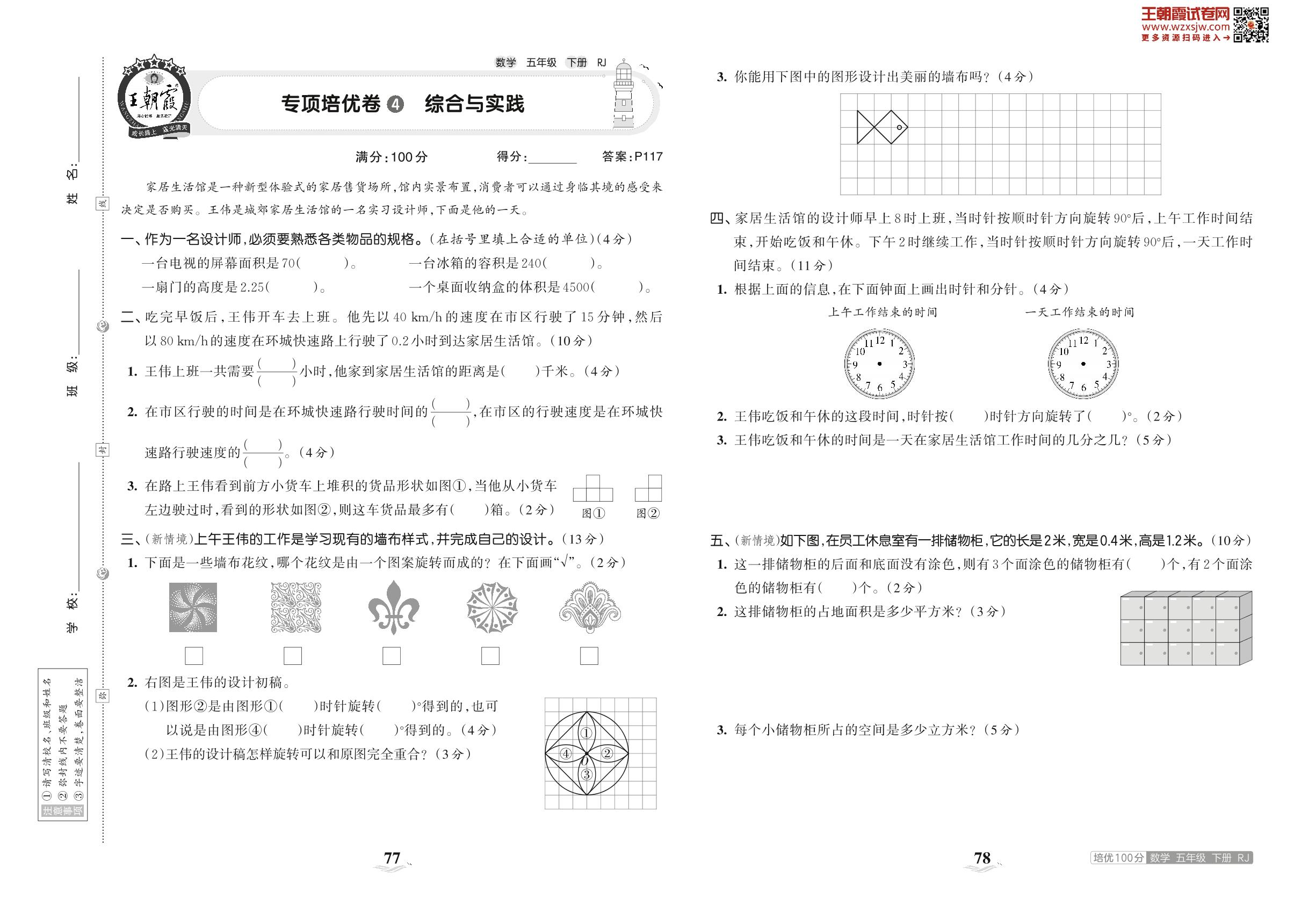 2023下册五年级数学人教版 专项培优卷4 综合与实践