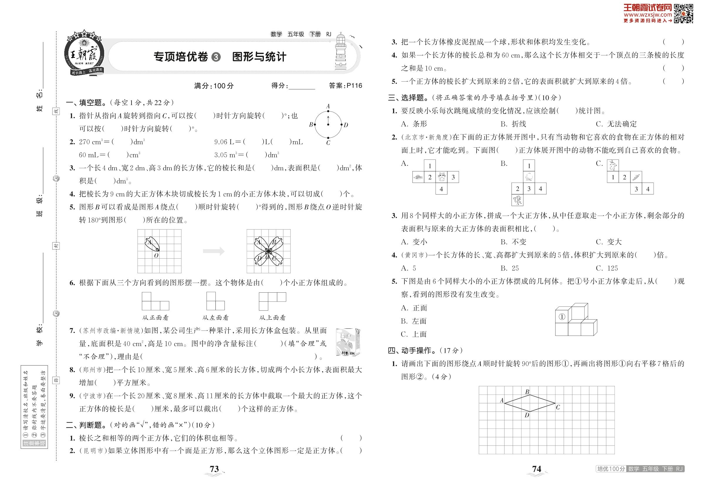 2023下册五年级数学人教版 专项培优卷3 图形与统计