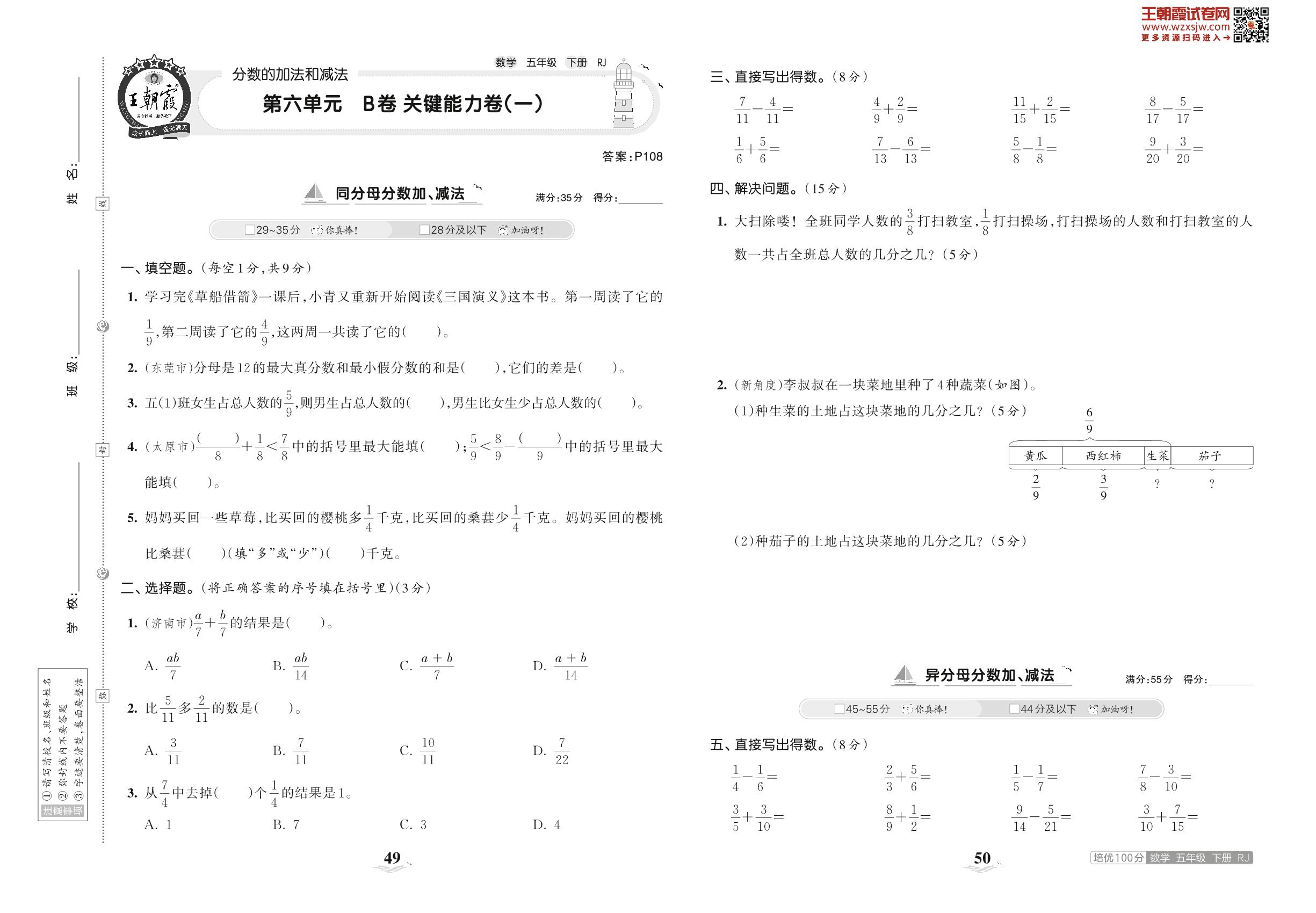 2023下册五年级数学人教版 第六单元 B卷 关键能力卷(一)