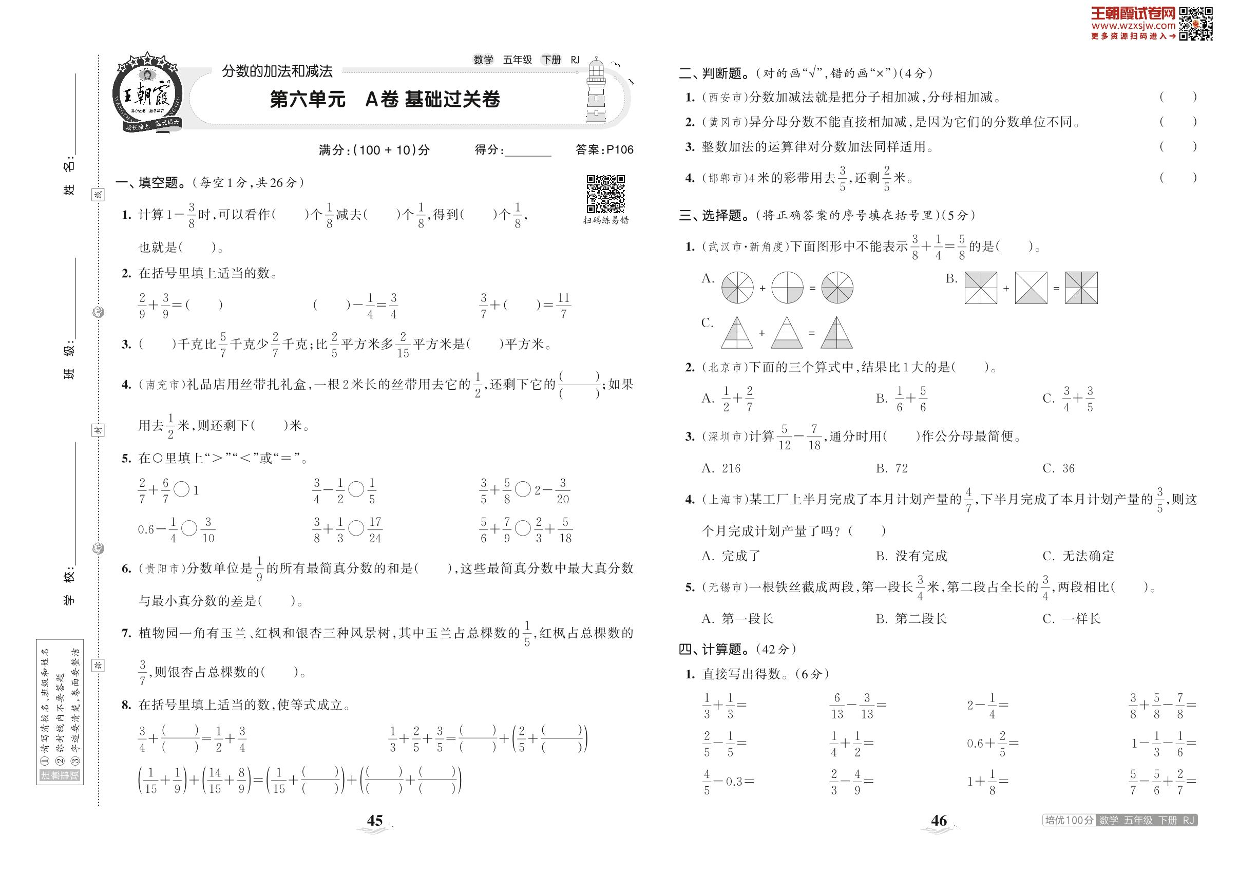 2023下册五年级数学人教版 第六单元 A卷 基础过关卷