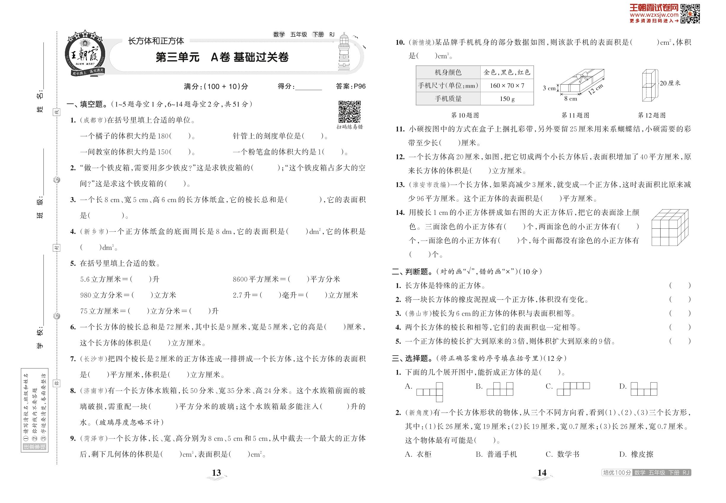 五年级数学人教版下册单元卷