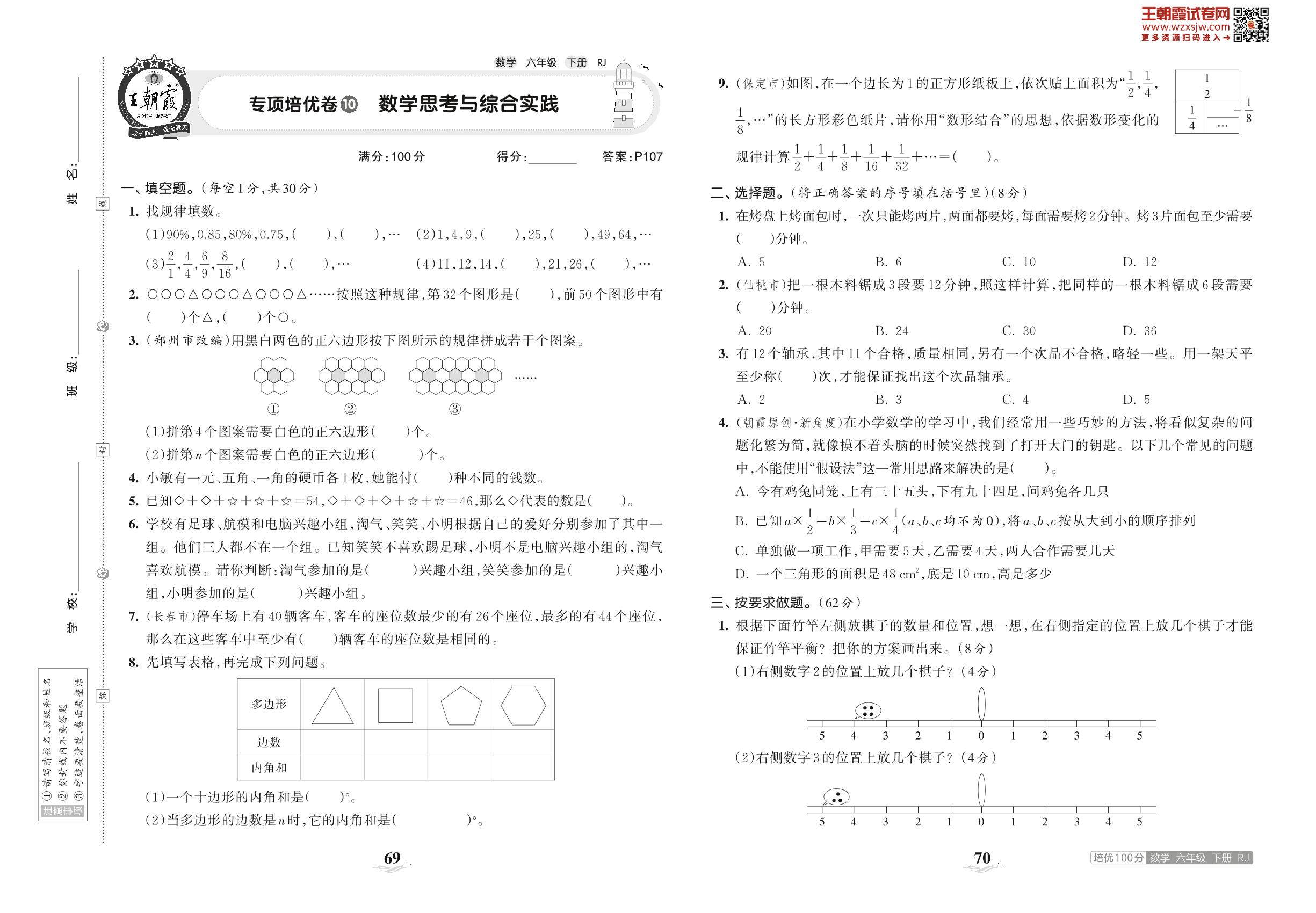2023下册六年级数学人教版 专项培优卷10 数学思考与综合实践