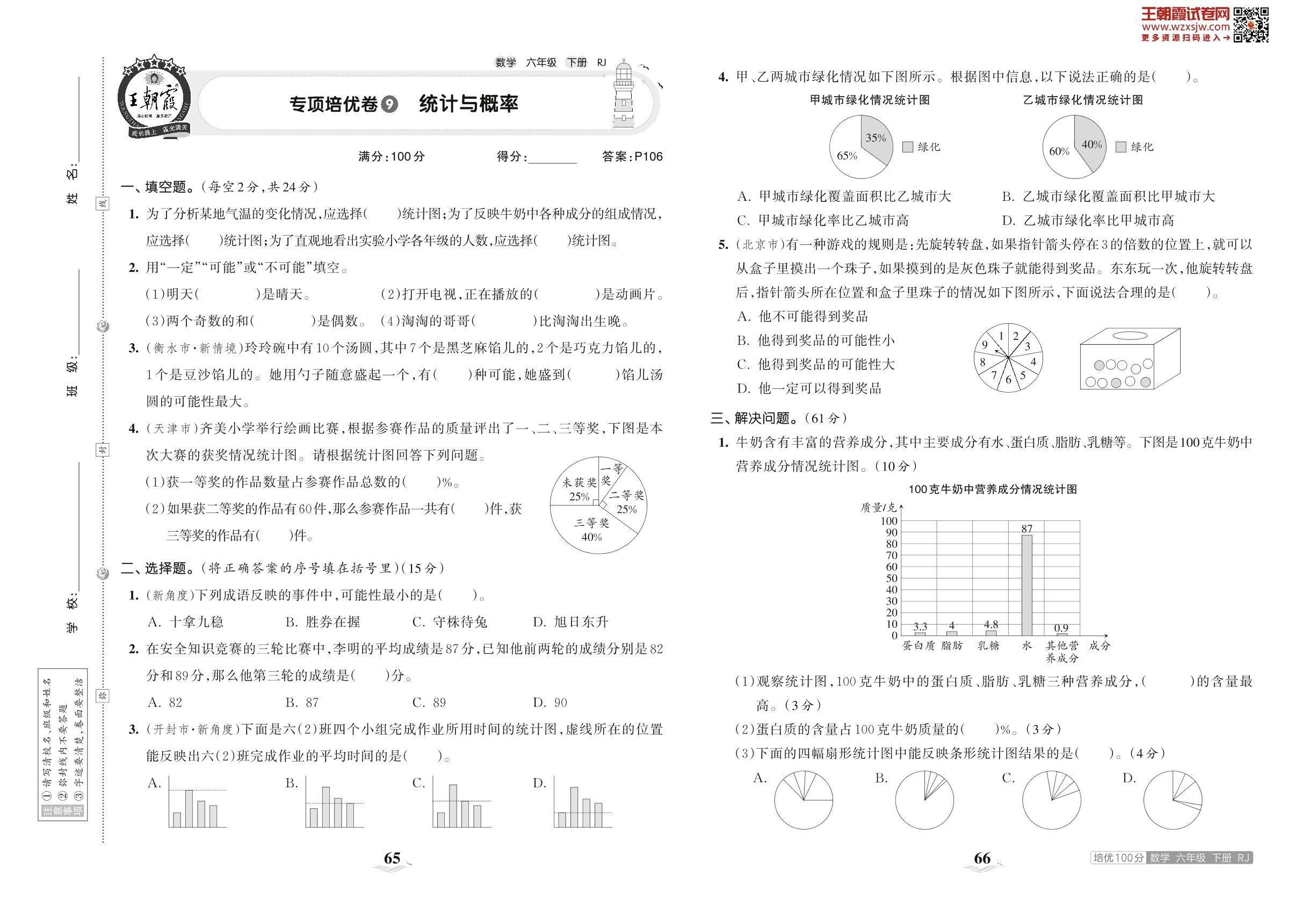 2023下册六年级数学人教版 专项培优卷9 统计与概率