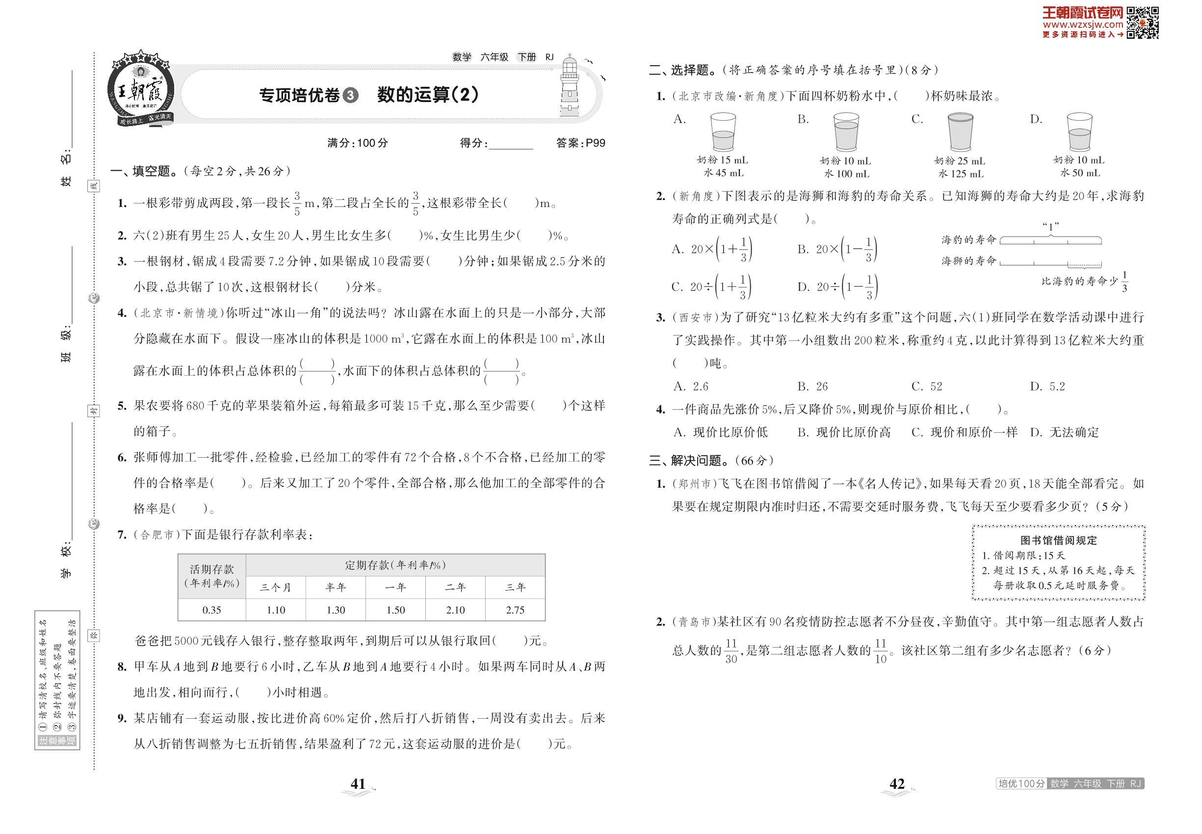 2023下册六年级数学人教版 专项培优卷3 数的运算(2)